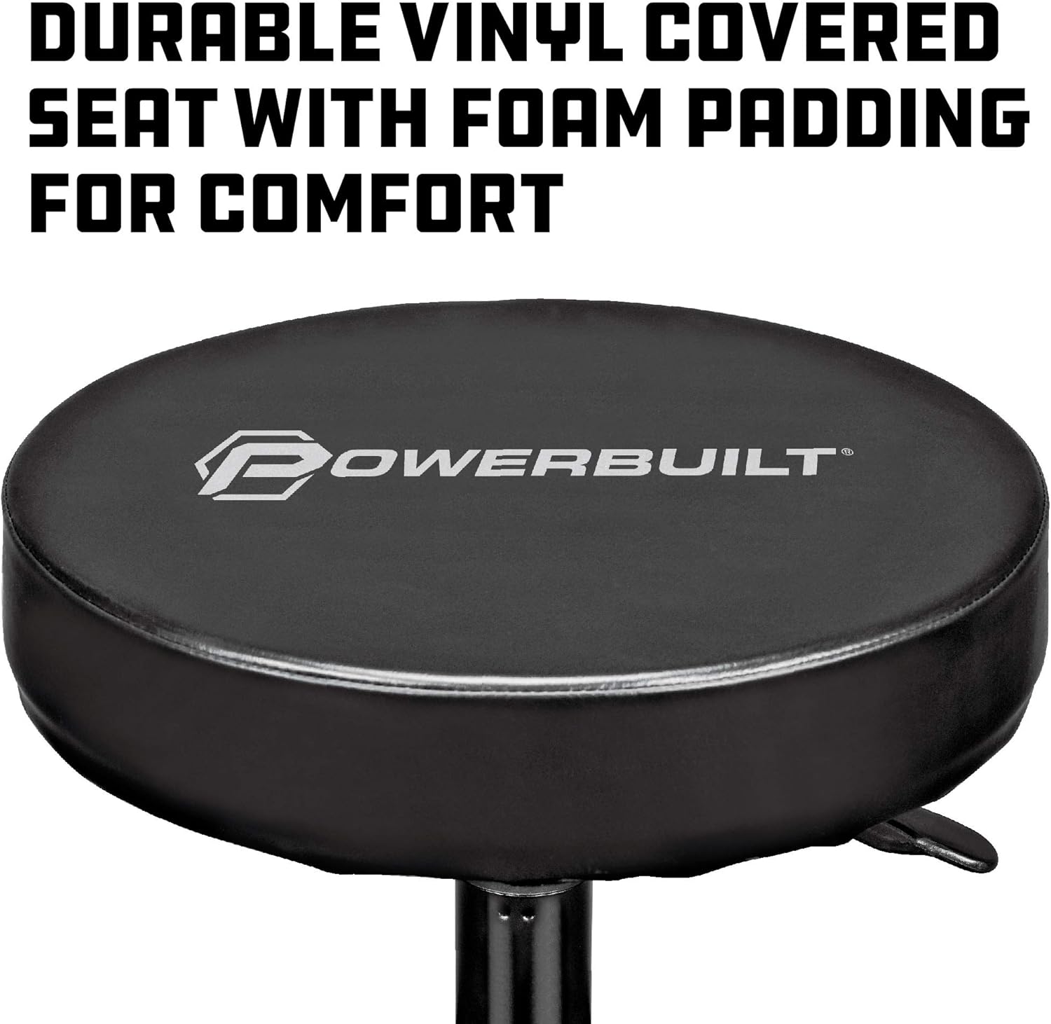 Powerbuilt Rolling Seat, Height-Adjustable Garage Stool with Tool Tray, Smooth and Padded for Car Repair, Detailing, Comfort - 640834, Black