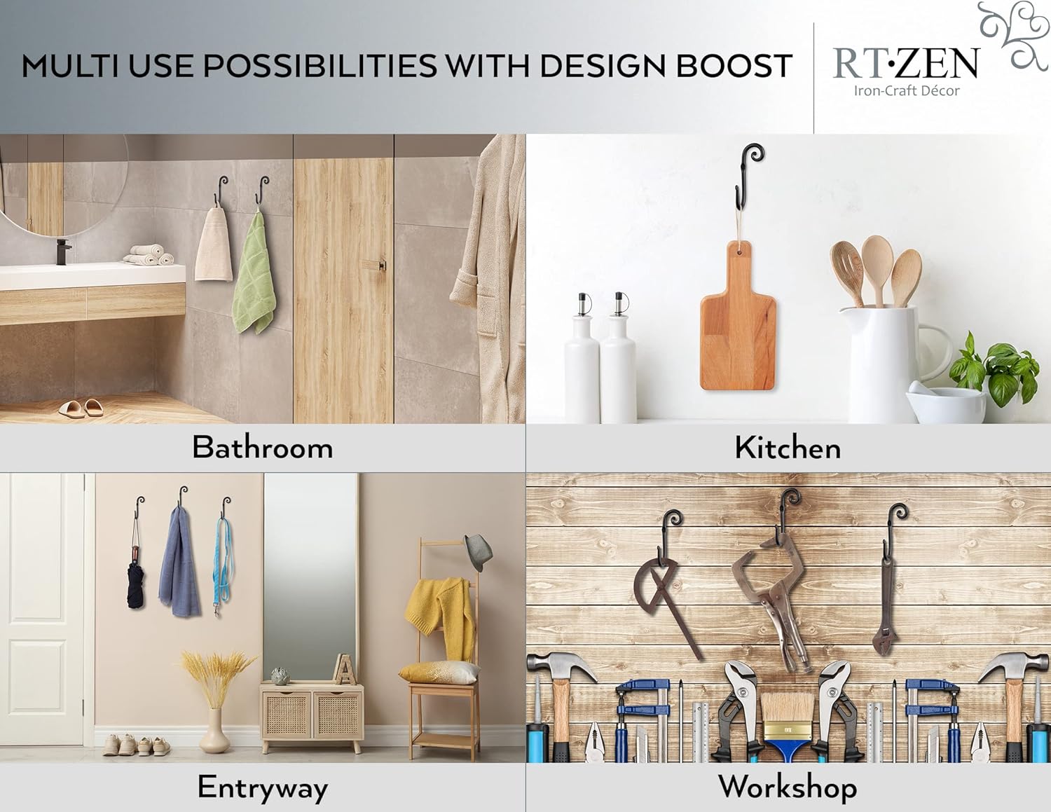 • EXCLUSIVE LIFETIME PEACE OF MIND - Handcrafted Metal Matte Boho Decorative Hooks for Any Home Aesthetic. Farm House Vintage or Modern Home Design. Smart Secure Vertical Storage Coat Rack Wall Mount & Display