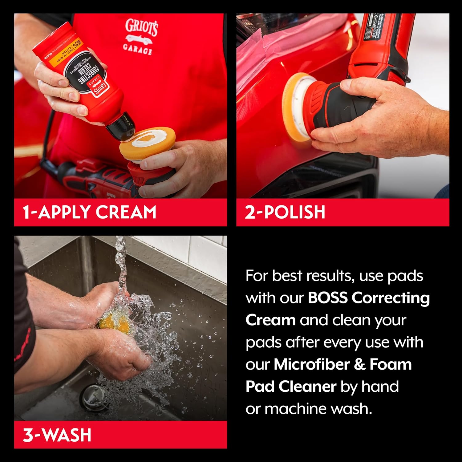 Griot's Garage Orange Foam Correcting Pads for Car Polishing and Detailing, Removes Light to Moderate Paint Defects, Durable, Machine-Washable, 11241, 3", Set of 3
