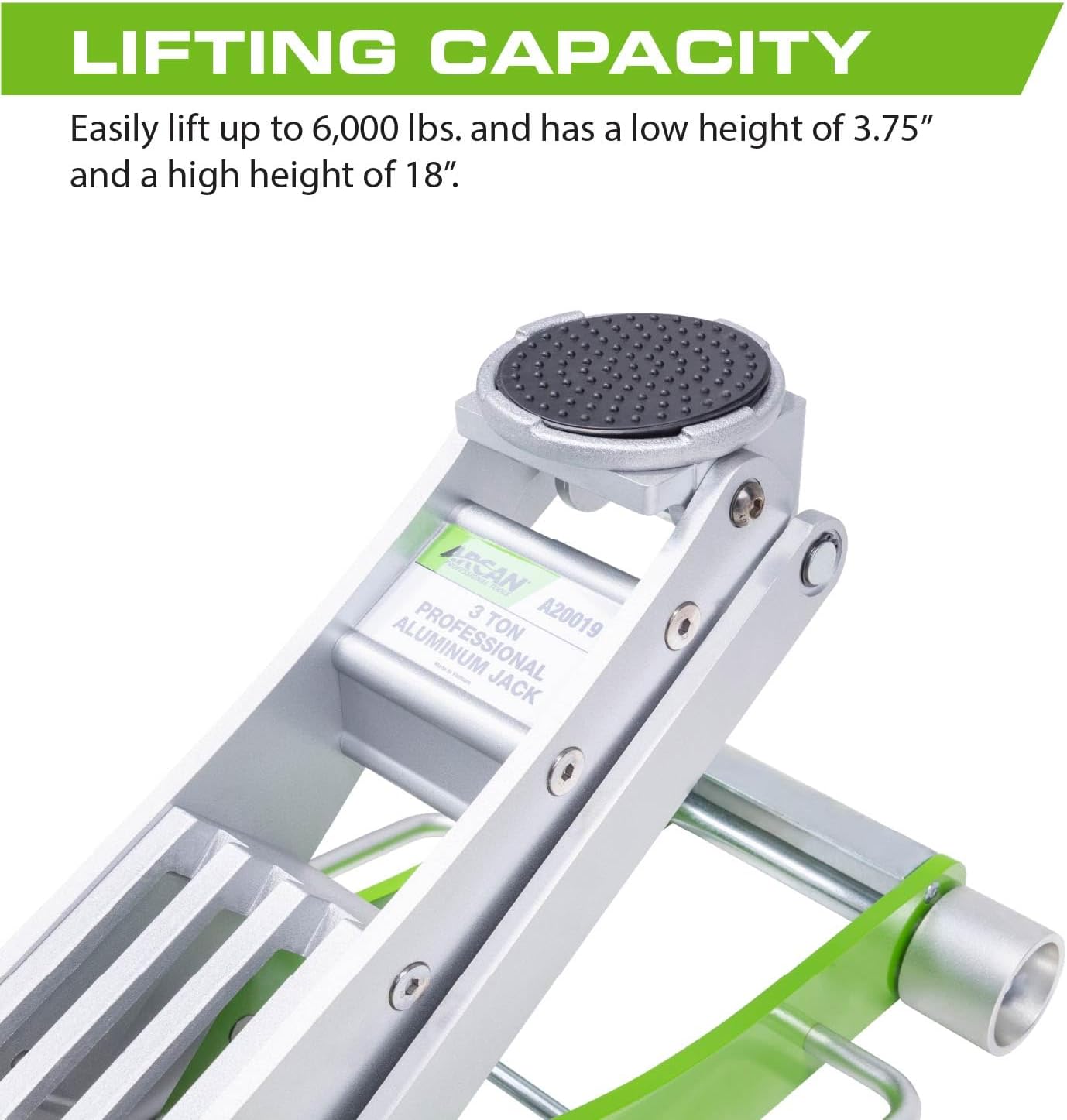 ARCAN Tools 3-Ton Quick Rise Aluminum Floor Jack with Dual Pump Pistons & Reinforced Lifting Arm (A20018_A20019)