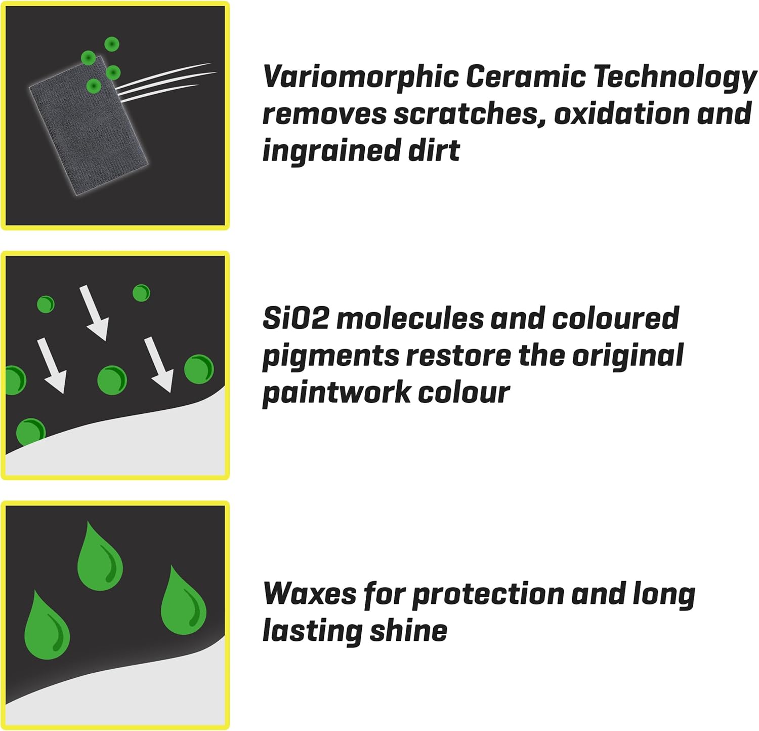 - The coloured pigments blend in with all shades of paintwork, cleaning and removing oxidation, creating a flawless colour-matched finish.