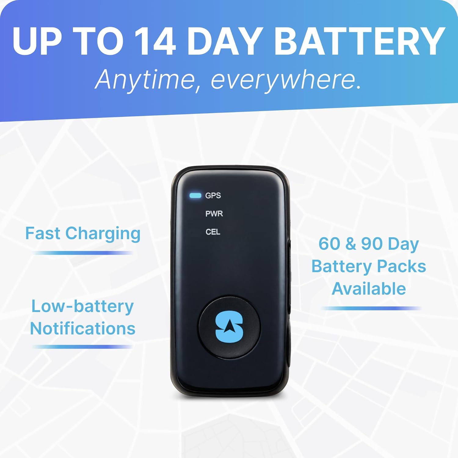 - UP TO 14-DAY BATTERY LIFE: Our Mini GPS tracker is only 3.07". Its compact design makes it an ideal anti-theft car device or as a tracker for kids, seniors, vehicles, or other assets like boats or RVs in storage.