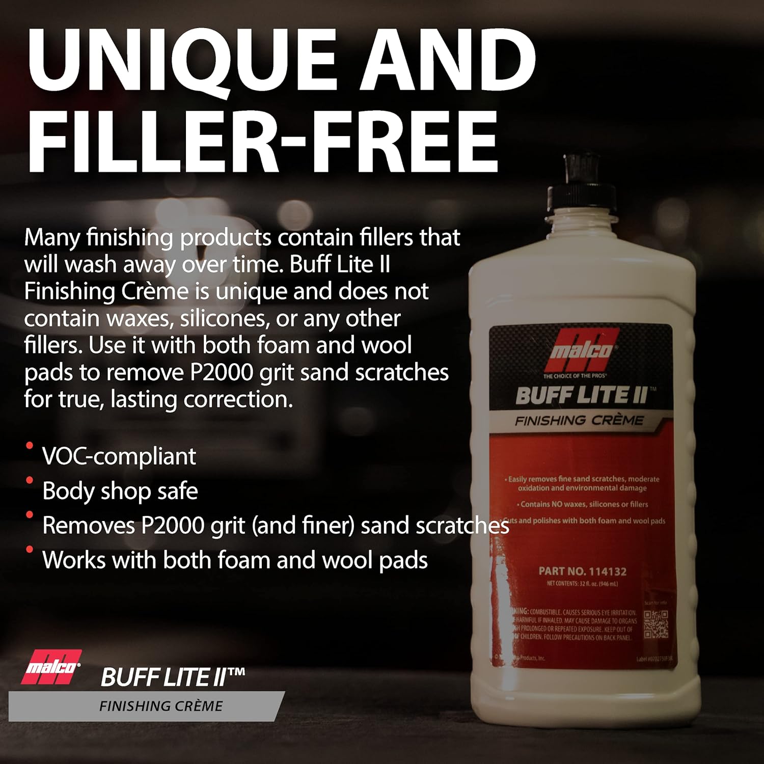 Malco Buff Lite II Finishing Crème – One-Step Professional Cutting, Polishing and Finishing Compound/Removes Brush Marks, Car Wash Scratches, and Snow Brush Scratches / 32 Oz. (114132)