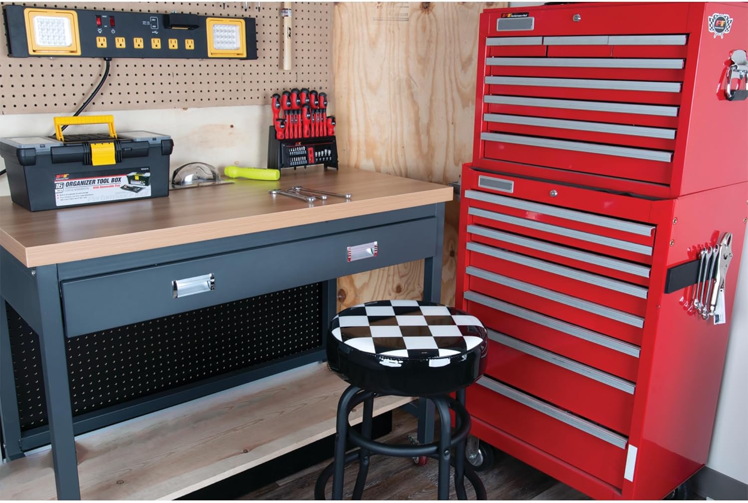 Performance Tool W85023 28-1/2-Inch Checkerboard 360 Degree Swivel Stool, Heavy Duty Steel Frame Is Perfect for Home, Bar and Shop
