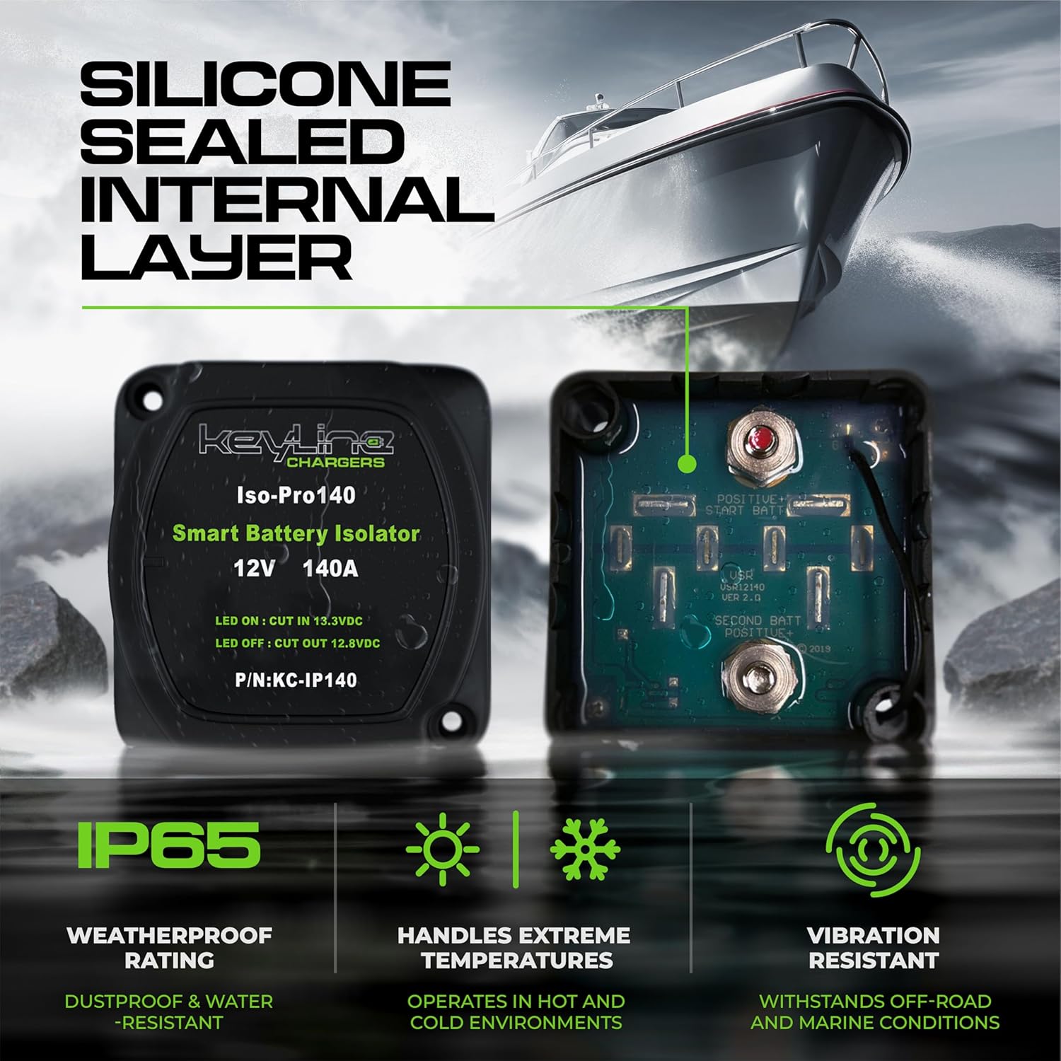 - Trusted Performance with Warranty & Money-Back Guarantee – Every dual battery kit by KeyLine Chargers is backed by a 12-month industry-leading warranty. If you’re not 100% satisfied with your purchase, take advantage of our 30-day money-back guarantee—no questions asked! Drive with confidence knowing you have a premium battery isolator 12V kit keeping your power system running at full capacity.