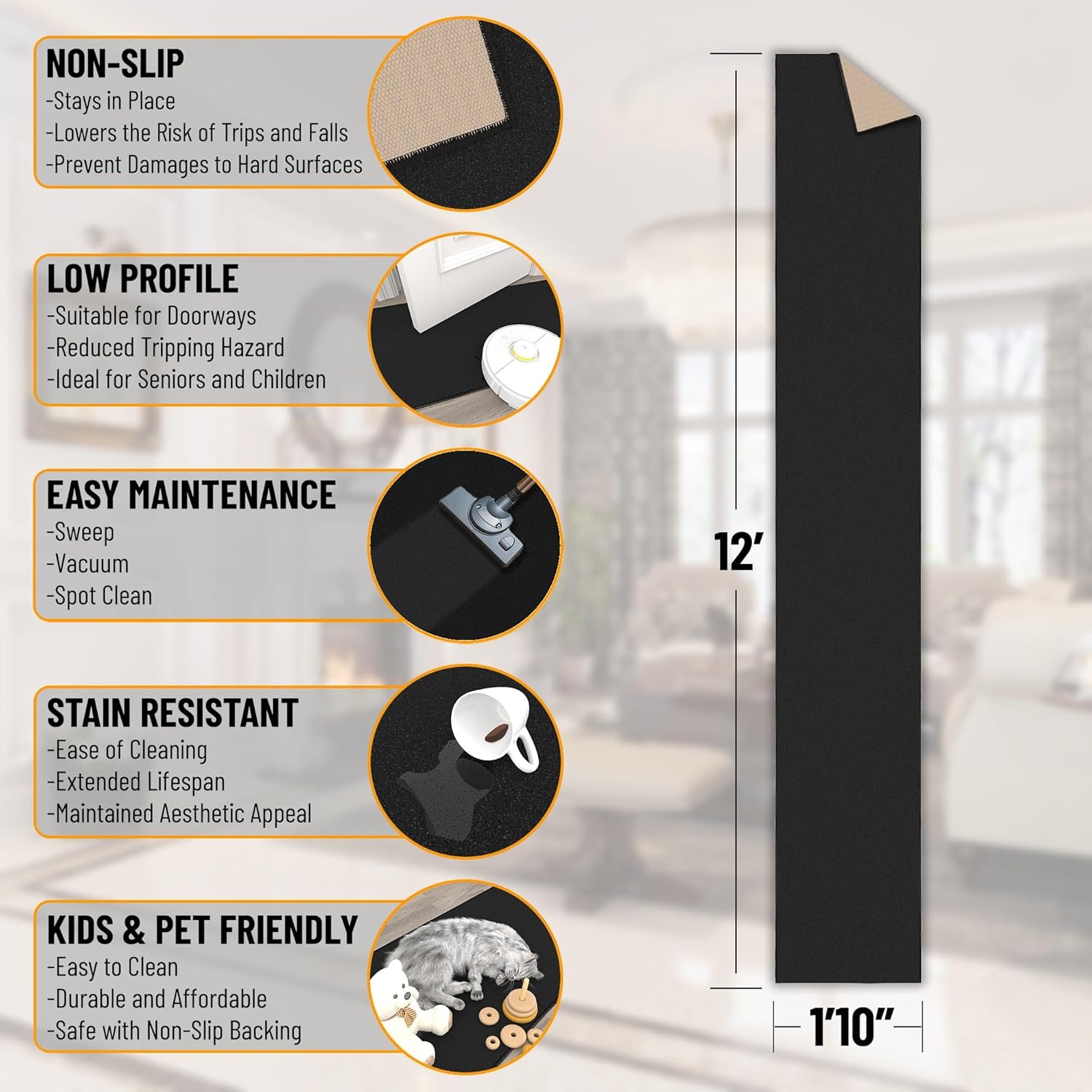 - [Slim 0.2-Inch Profile Clears Doors]: Low-pile construction allows for smooth door clearance and easy furniture placement—perfect for hallways, kitchens, and transitional spaces.
