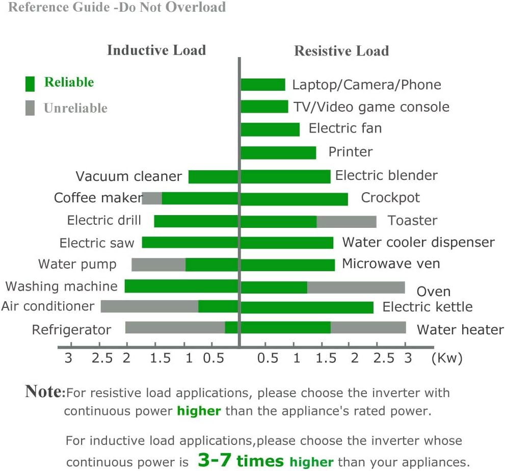 - Low no load current draw of under 1A,the power inverter will drain you battery much slower than many other kinds of inverter.Wide DC and AC voltage ranges.Friendly with most kinds of batteries.