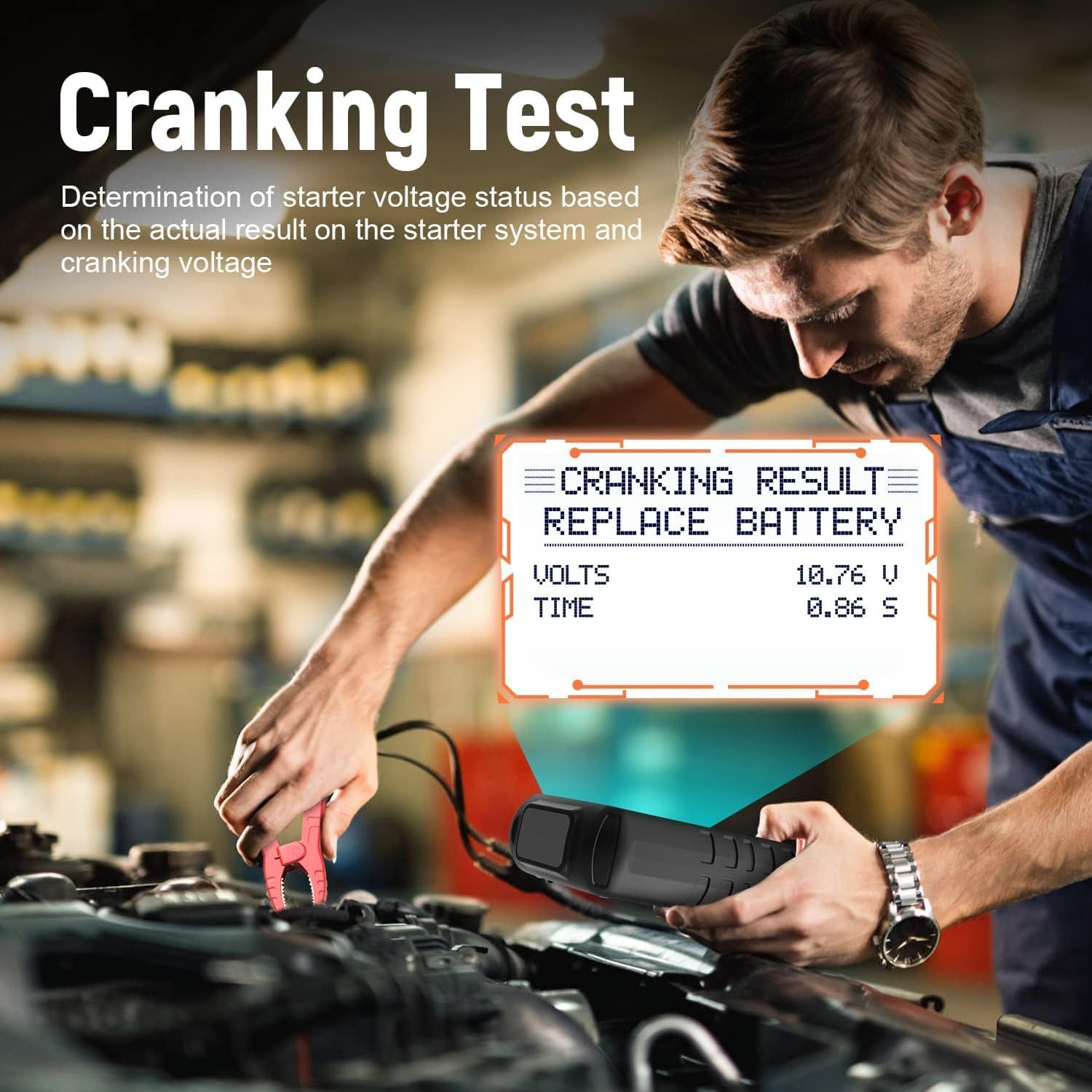 - Car Battery Doctor - The FOXWELL battery tester quickly assess overall battery condition with SOH (State of Health) and SOC (State of Charge) analysis. Identify issues early with detailed insights, including available power, CCA, cranking voltage, cranking time, alternator output, no-load voltage, and loaded voltage, helping to prevent unexpected failures and unnecessary maintenance.
