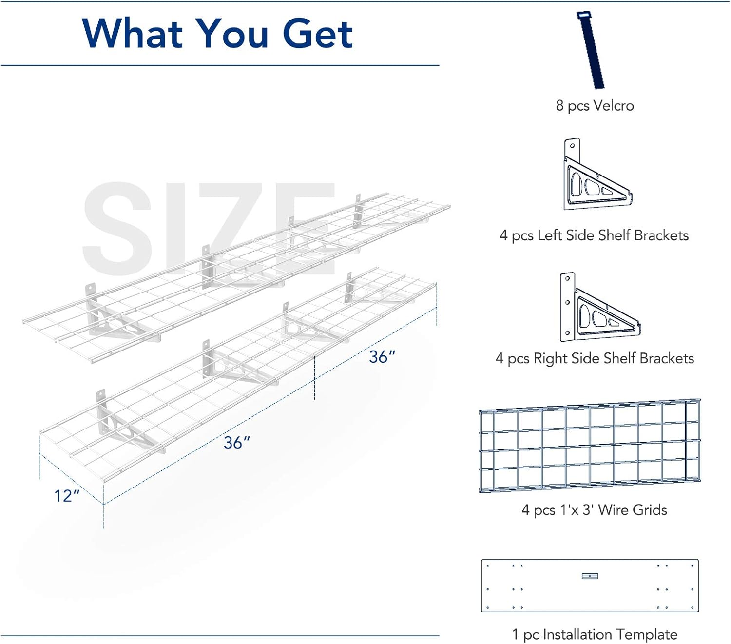FLEXIMOUNTS 12-inch-by-72-inch Wall Shelf Garage Storage Rack Wall Mounted Floating Shelves,1x6ft ,white, 2-Pack