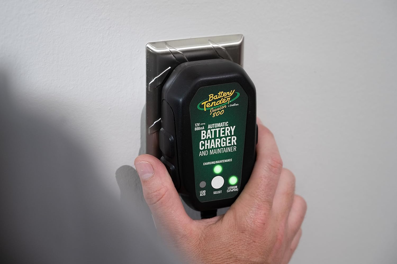 Battery Tender Junior 12V, 800mA Battery Charger and Maintainer for Lead Acid and Lithium Batteries - Switchable Battery Charger for Powersports - 022-0199-DL-WH