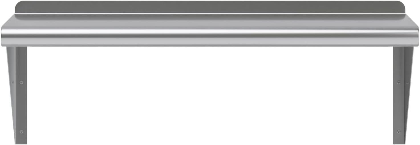 - 18 gauge 430 stainless steel shelf top, and stainless steel shelf mounting brackets. Bullnose Edge. 1" Backsplash. Shelves are available in sizes ranging from 16” to 96” and width ranging from 6” to 18”. All shelves come with 2 support brackets (3 brackets for shelves over 72” long). Professional and sleek look make this space saving shelf a good fit in commercial or residential environment.