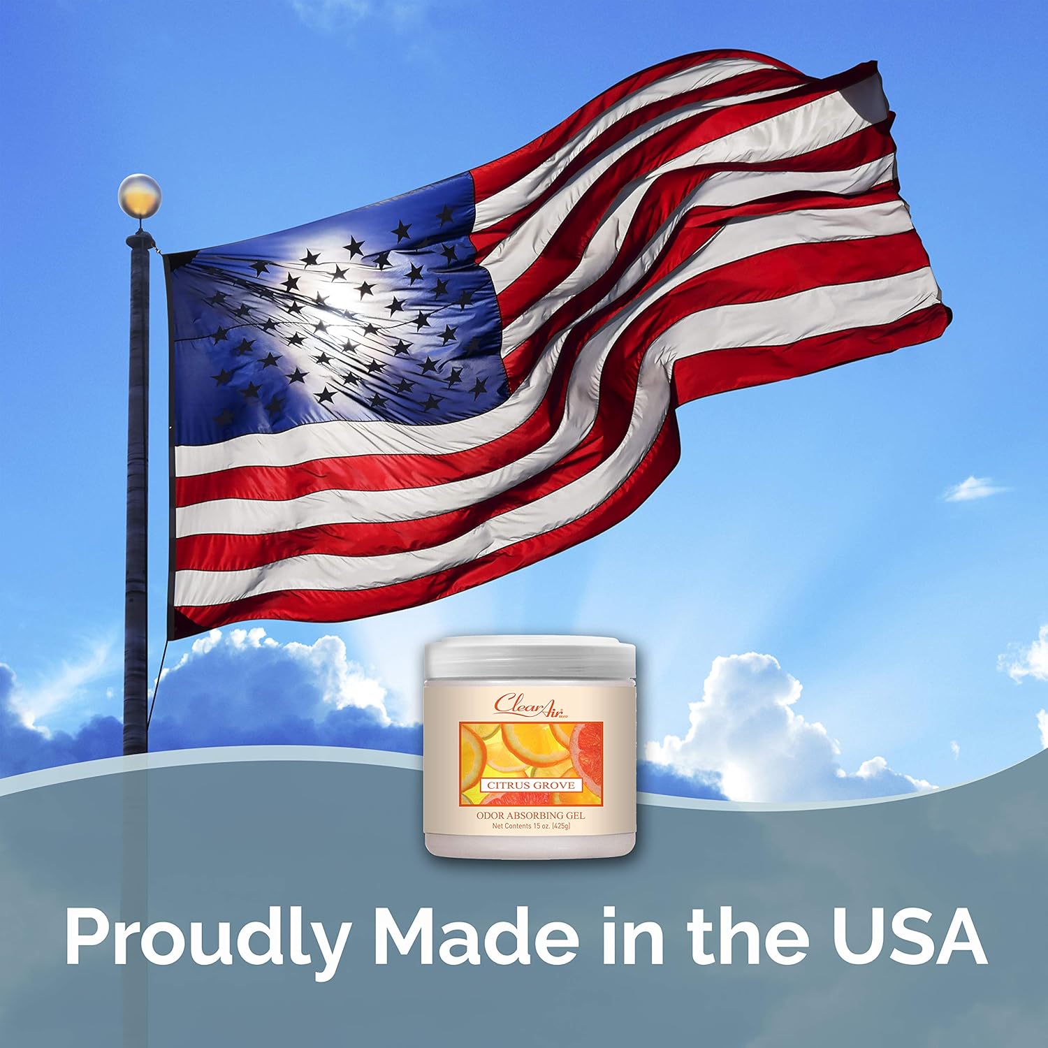 Clear Air Odor Absorber Gel - 15 oz, Pack of 2 - Air Freshener Absorbs and Eliminates Odors in Bathrooms, Cars, Boats, RVs and Pet Areas - Made with Essential Oils - Citrus Grove Scent