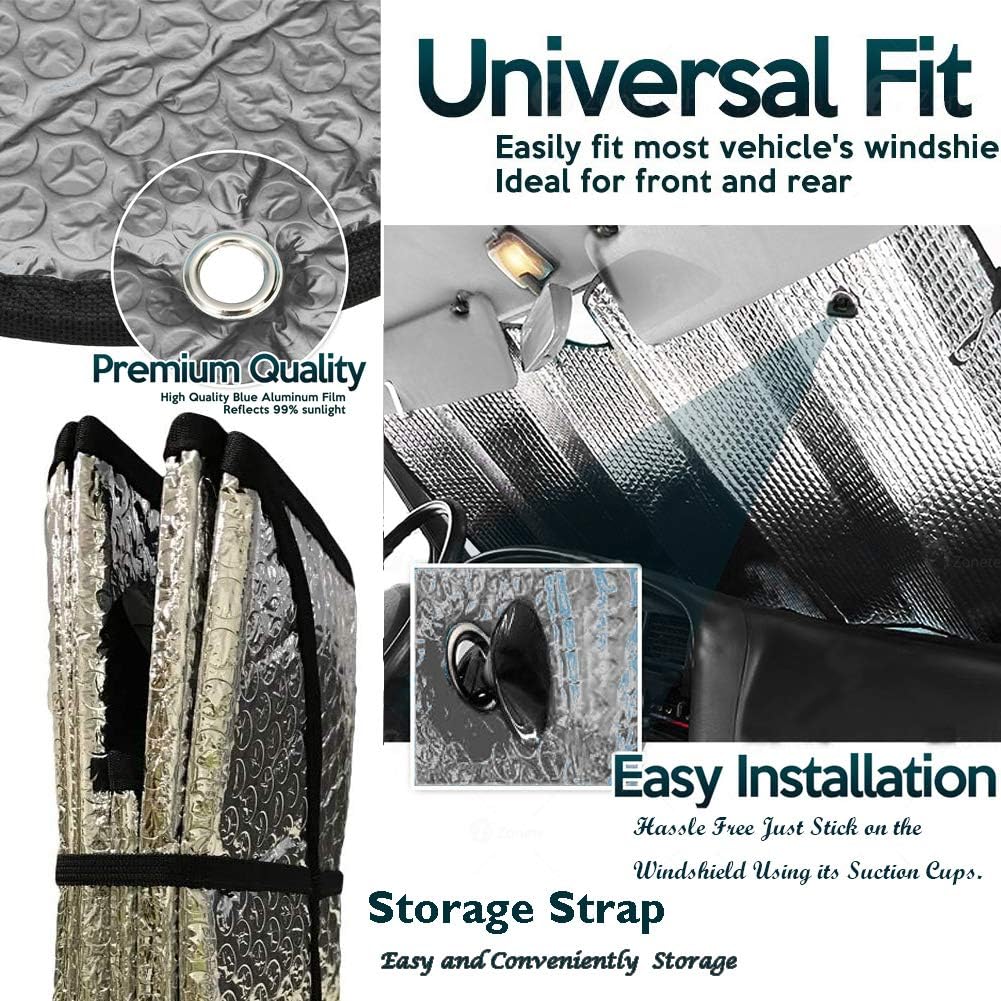 - JUMBO SIZE - Perfectly fits most car windshields and is available in Jumbo size (55" x 27.5"),Please check your windshield size if you have a mini size car