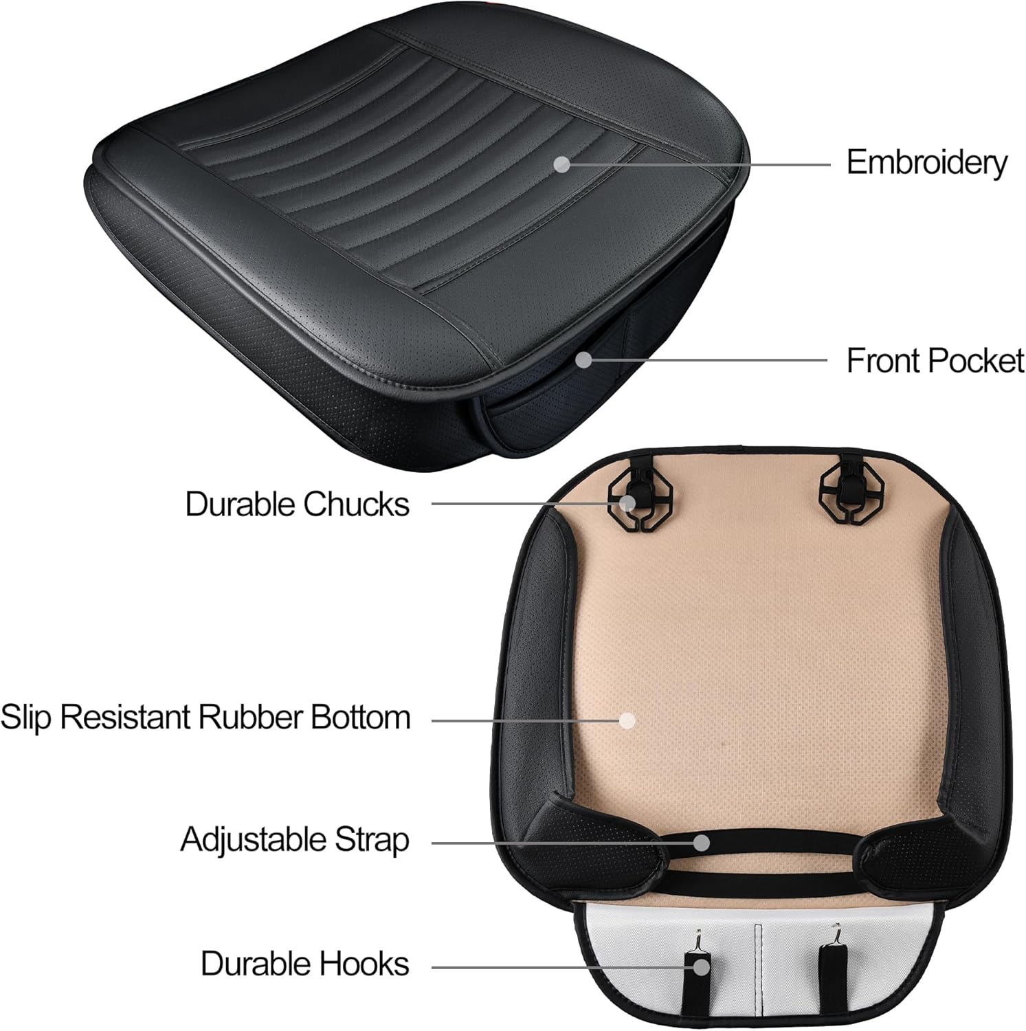 - ✅Premium PU Leather Material-The auto seat cover is made of high-grade soft PU leather, waterproof, easy to scrub, durable and good breathability. Built-in a layer of highly flexible sponge, four seasons applicable. Maintain the comfort of the buttocks, helps relieve pressure on hips and thighs when driving for a long time. When the seat cushion is stained, just wipe it gently with a dry towel.