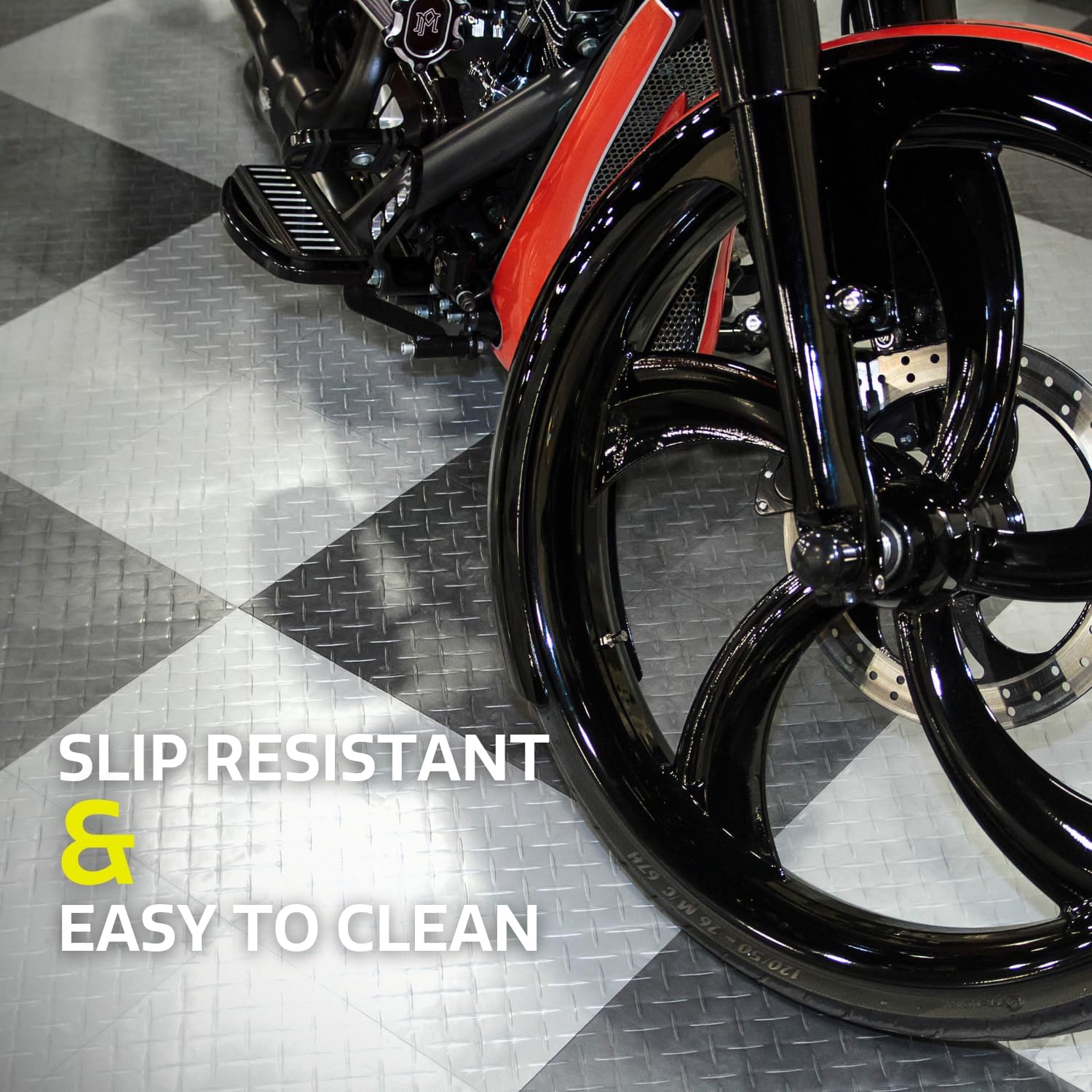 - SLIP RESISTANT AND EASY TO CLEAN: Unlike epoxy or other floor treatments, the diamond plate design provides great traction with little or no maintenance. The sturdy, durable surfaces won’t stain and make clean-up a breeze. Car oil, dirt, dust, or other messes are no problem with a mop or shop vac.