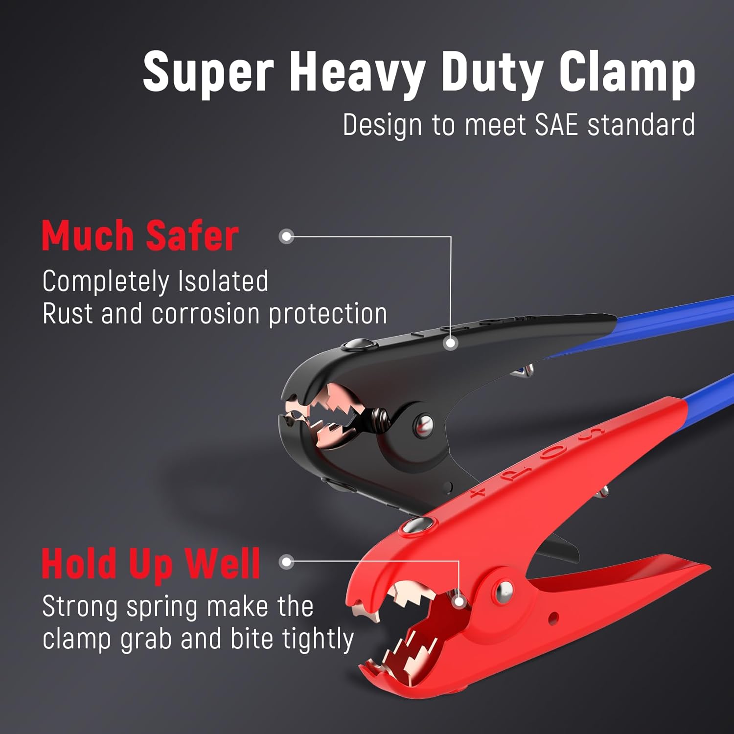 - Strong And Safe Clamps: The TOPDC Jumper Cables booster cable has two giant alligator clamps with strong jagged teeth and springs for excellent grip force. The jaws are strong and make connections easy. And the High Peak Jumper Cables has insulating material to prevent electric shock and protect the safety of users