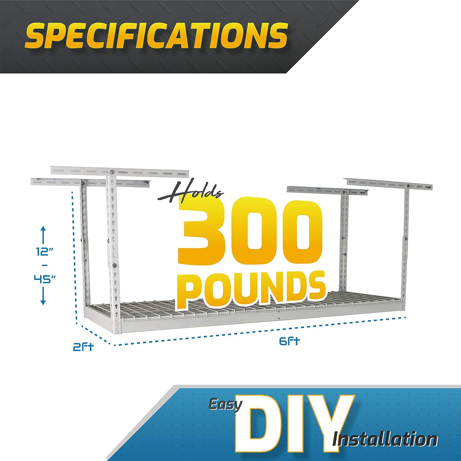 MonsterRax Overhead Garage Storage Rack 2 x 6 Ceiling Rack for Garage Shelving, Organization, & Storage, Adjustable Hanging Storage for Bikes, Equipment & Bins (White, 24"- 45" Ceiling Drop)