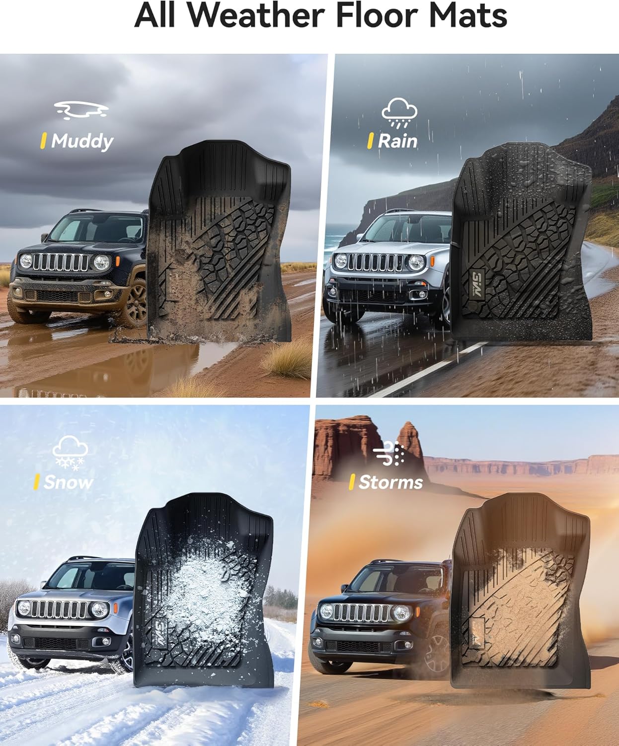 - ALL-WEATHER APPLICATION: Waterproof pad preventing from rain, slush, snow, mud and everything else. Even you can drive with mats at an extreme heat and cold weather for Jeep Renegade 2015-2023.