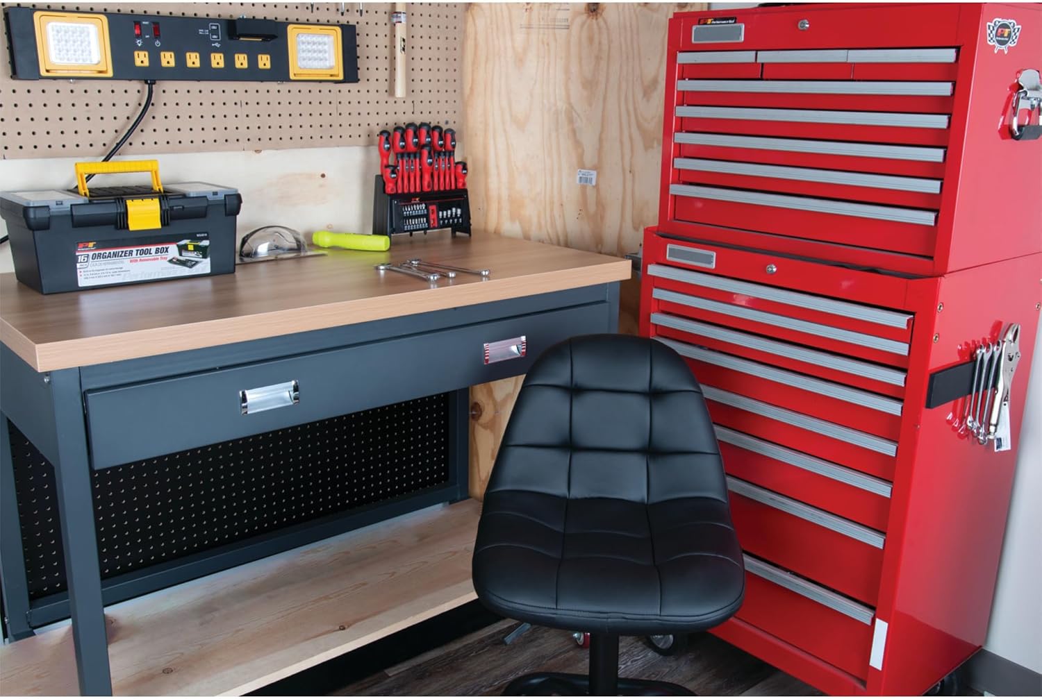 Performance Tool W85031 Pneumatic High Back Adjustable Swivel Bar Stool with Back Support for Home, Bar, and Shop, Black, 26-32-Inches High