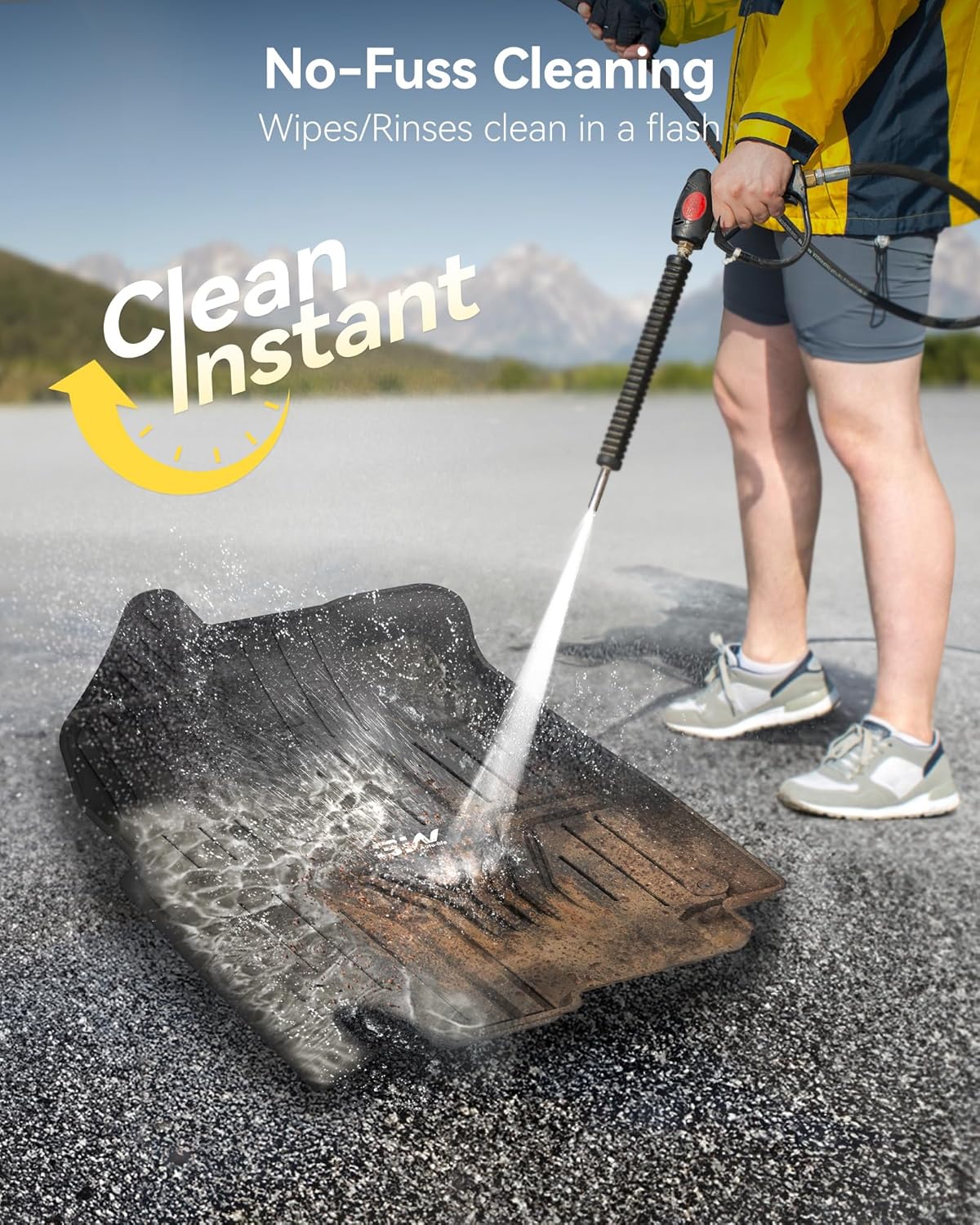- ALL SEASONS AND DURABILITY: The floor mats set are easy to install and can be used all weather, which are stain-resistant, waterproof and anti-slip, preventing your carpet from rain, slush, snow, mud and protect your car during a typical winter or summer.