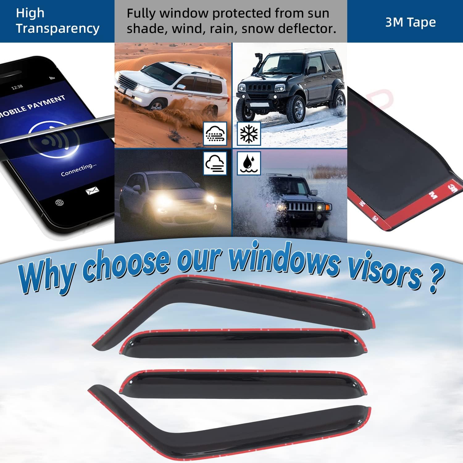 - Package Included: 4pis front + rear vent window visors (3M Tape Included)