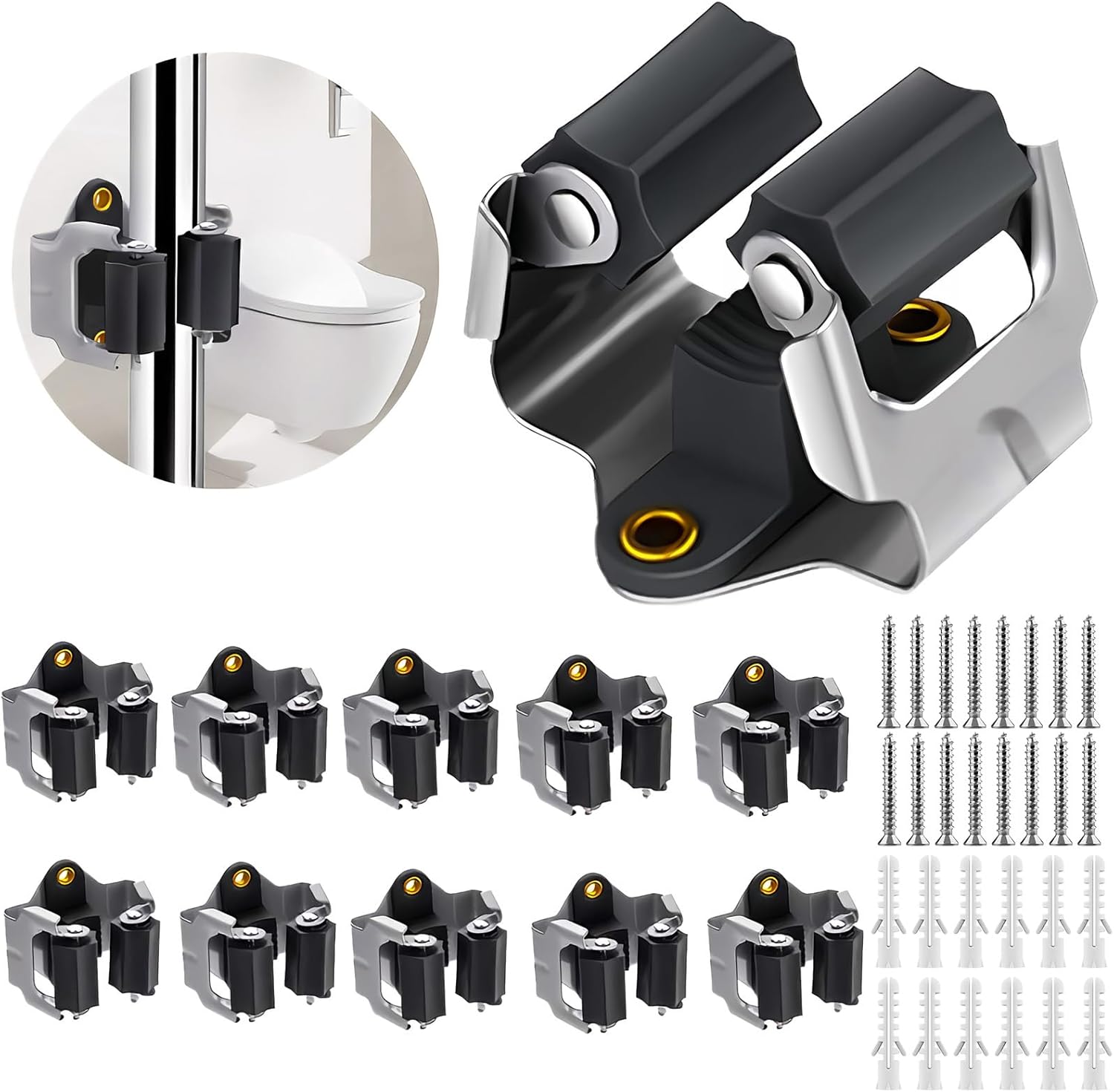 3-H 10 Pack Mop and Broom Holder Big Size Hanging 1 KG Extra, Broom Holder Wall Mount for Hanging and Organizing Shove Rake Yard Tools in Garage Garden Shed Laundry Kitchen up to 1.45 Inch (black)