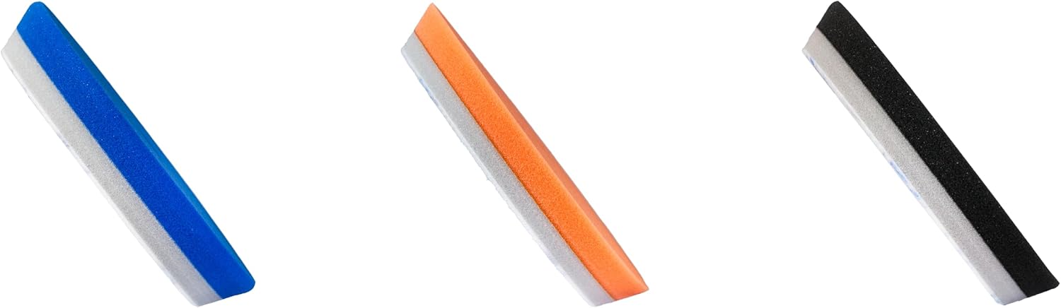 - HDO Foam Buffing Pads (Set of 3): Experience the difference quality makes. This foam polish pad pack of 3 contains 1 blue heavy polishing pad, 1 orange light polishing pad, 1 ultrasoft black finishing pad, and 2 microfiber pads - buffer pads that suit all your needs.