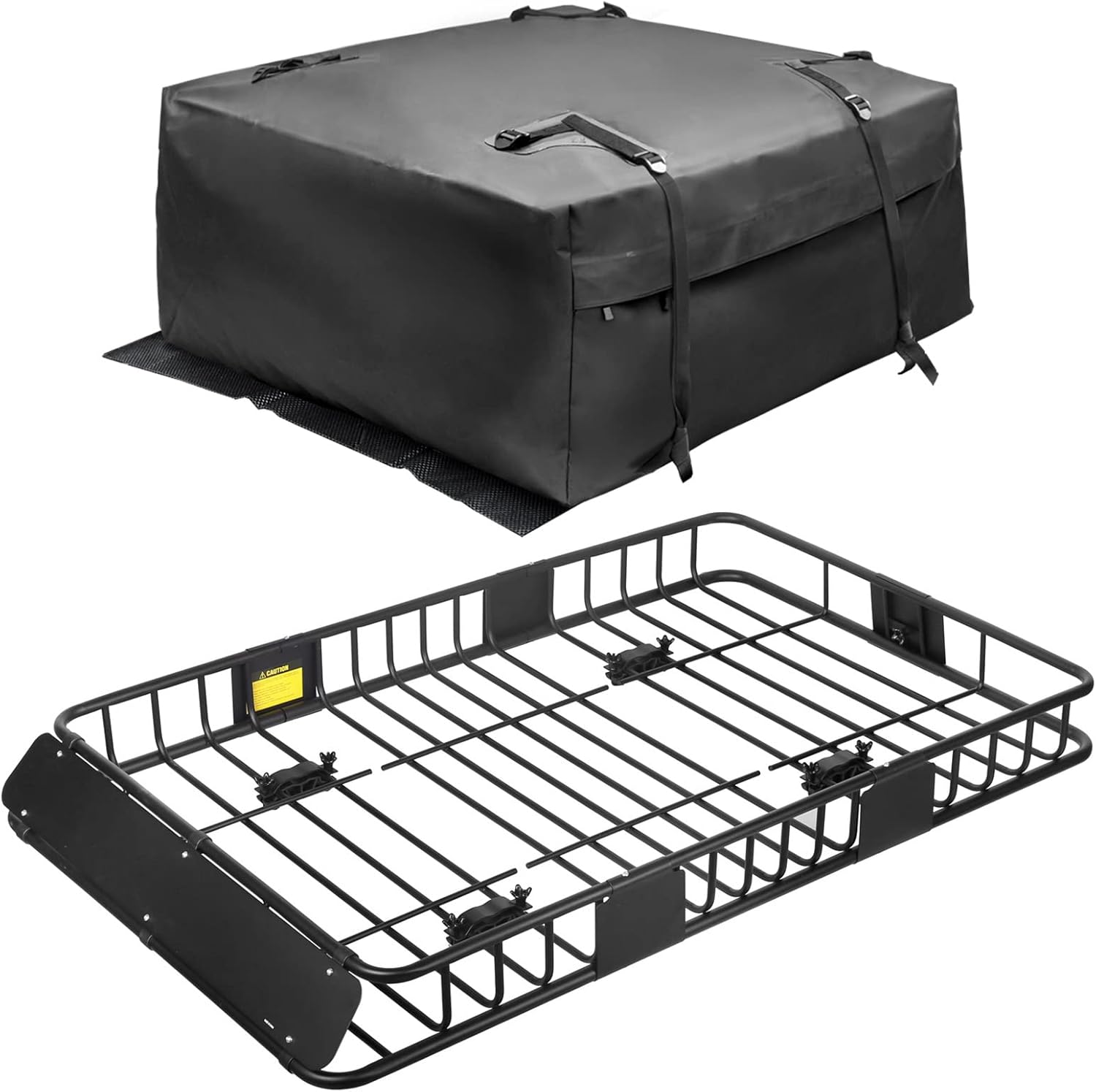 Leader Accessories Roof Rack Cargo Basket Set, Car Top Luggage Holder 64"x 39" + Waterproof Rooftop Cargo Carrier Bag