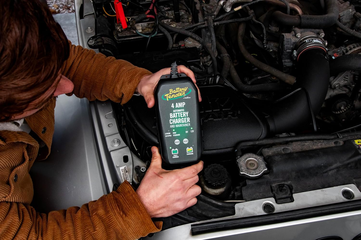 Battery Tender 4 AMP Battery Charger and Maintainer - Automotive Switchable 12V or 6V Smart Automatic for Cars SUVs and Trucks - Lead Acid, AGM, Gel, & Lithium Battery Charger - 022-0209-BT-WH