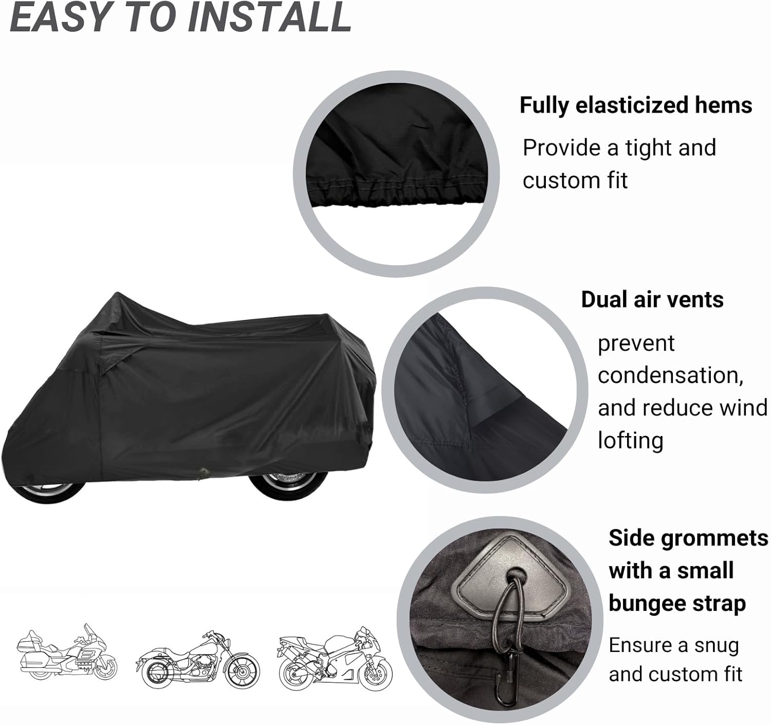 Deluxe Motorcycle Cover, Waterproof All Weather Outdoor Protection Universal Motorcycle Cover, Fade & Tear Proof Polyester fits Motorbike up to 110" L