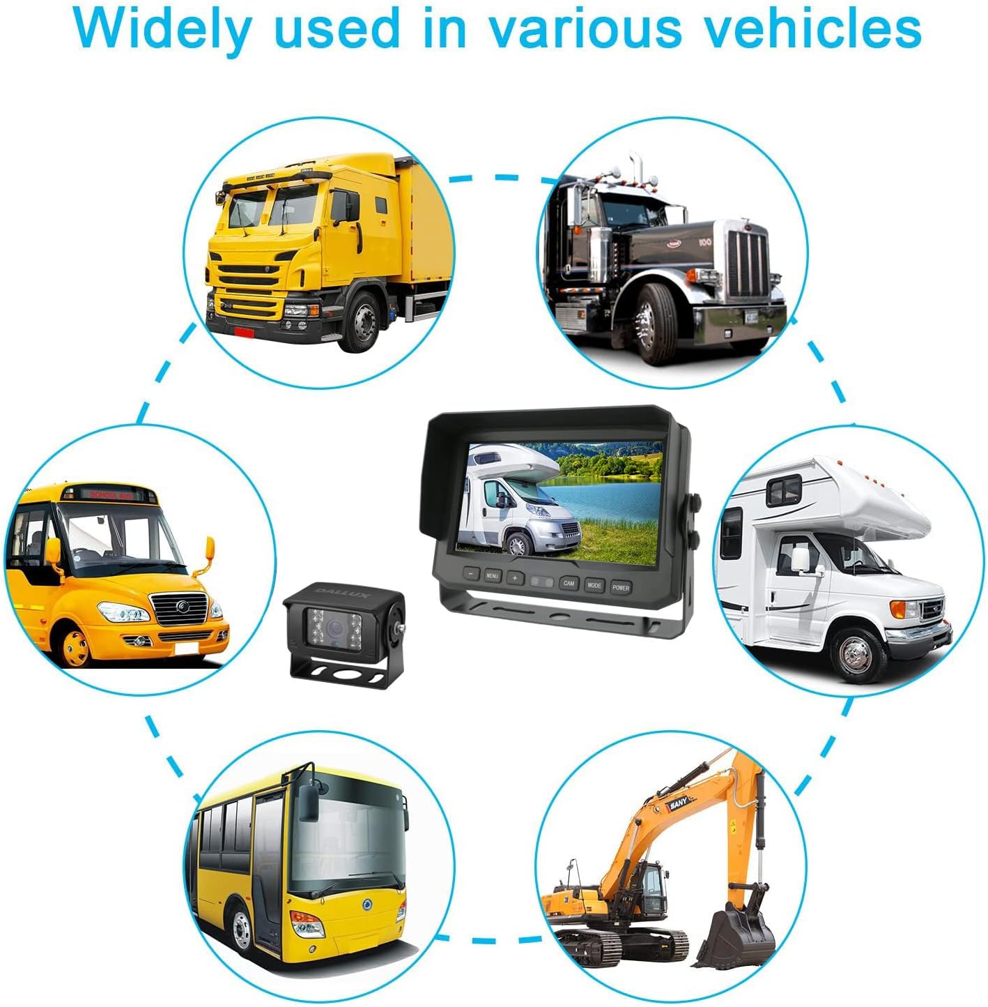 - Compatible Devices : 4PIN cab cam backup rearview camera Bus, Truck, Van,Trailer, RV, Campers, Motor Home, School bus, Pickup Truck, Travel Trailer, Oversized Truck, Dump Truck, Camping Trailer, 5th(fifth)wheel RV, Excavator, Horse Trailer and Agricultural Machine in farm for rearview vision monitor 4PIN cab cam backup rearview camera Bus, Truck, Van,Trailer, RV, Campers, Motor Home, School bus, Pickup Truck, Travel Trailer, Oversized Truck, Dump Truck, Camping Trailer, 5th(fifth)wheel RV, Excavator, Horse Trailer… See more