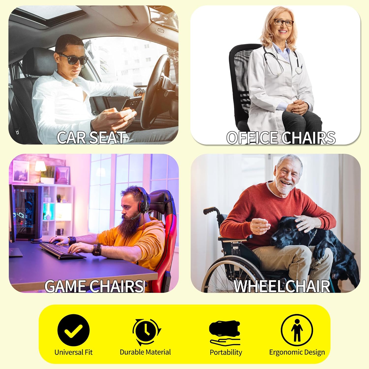 - ERGONOMIC DESIGN: Long-term driving is prone to back pain, our cushion's unique ergonomics and orthopedic design help relieve sciatica, pelvis, cheekbones or tailbone pain; effectively reduce leg pain, fatigue and numbness, making Driving is more comfortable. To relieve the pressure on the tail, sciatica and prolonged sitting posture.