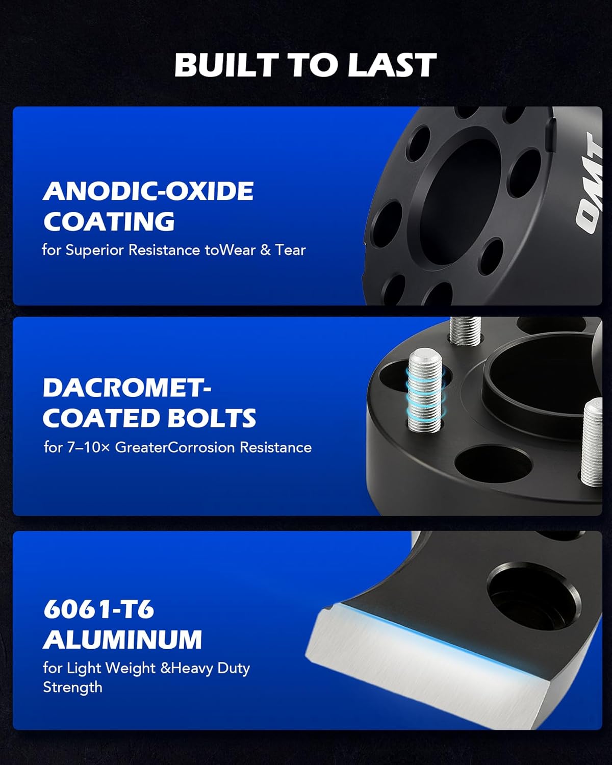 - PREMIUM MATERIAL: These 4-lug 4x4" wheel spacers are made from solid blocks of T6 aircraft-grade aluminum to keep them lightweight but highly durable and strong; the 16 Dacromat-coated 1/2"-20 bolts included are 7-10 times more corrosion resistant than the competition