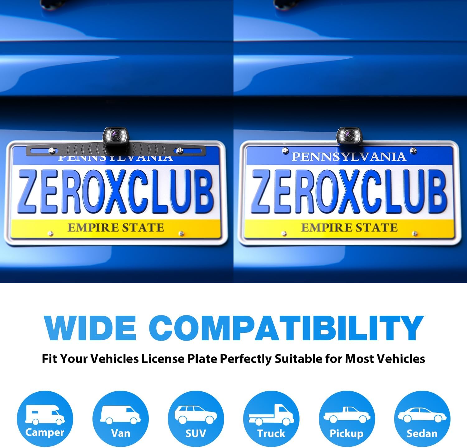 - ★【Excellent IP69k Waterproof 】 With IP69K waterproof design, even in rain /snow/dog day, you can see road condition clearly. This License Plate Backup Camera still work in extreme weather, provides clear image without delay.