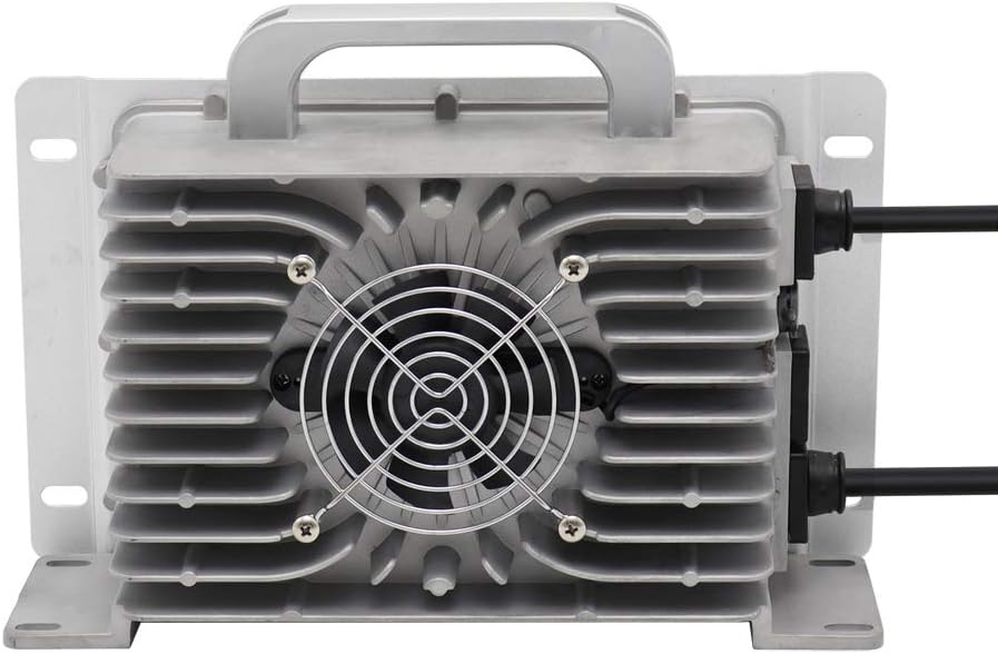- [LIGHTWEIGHT DESIGN & CONVENIENT CARRY HANDLE] - Designed with convenience in mind, the waterproof charger weighs in at only 9 lbs and is more than 50% lighter than most OEM and aftermarket golf cart battery chargers. It is constructed with a durable die-cast aluminum alloy casing providing exceptional durability.
