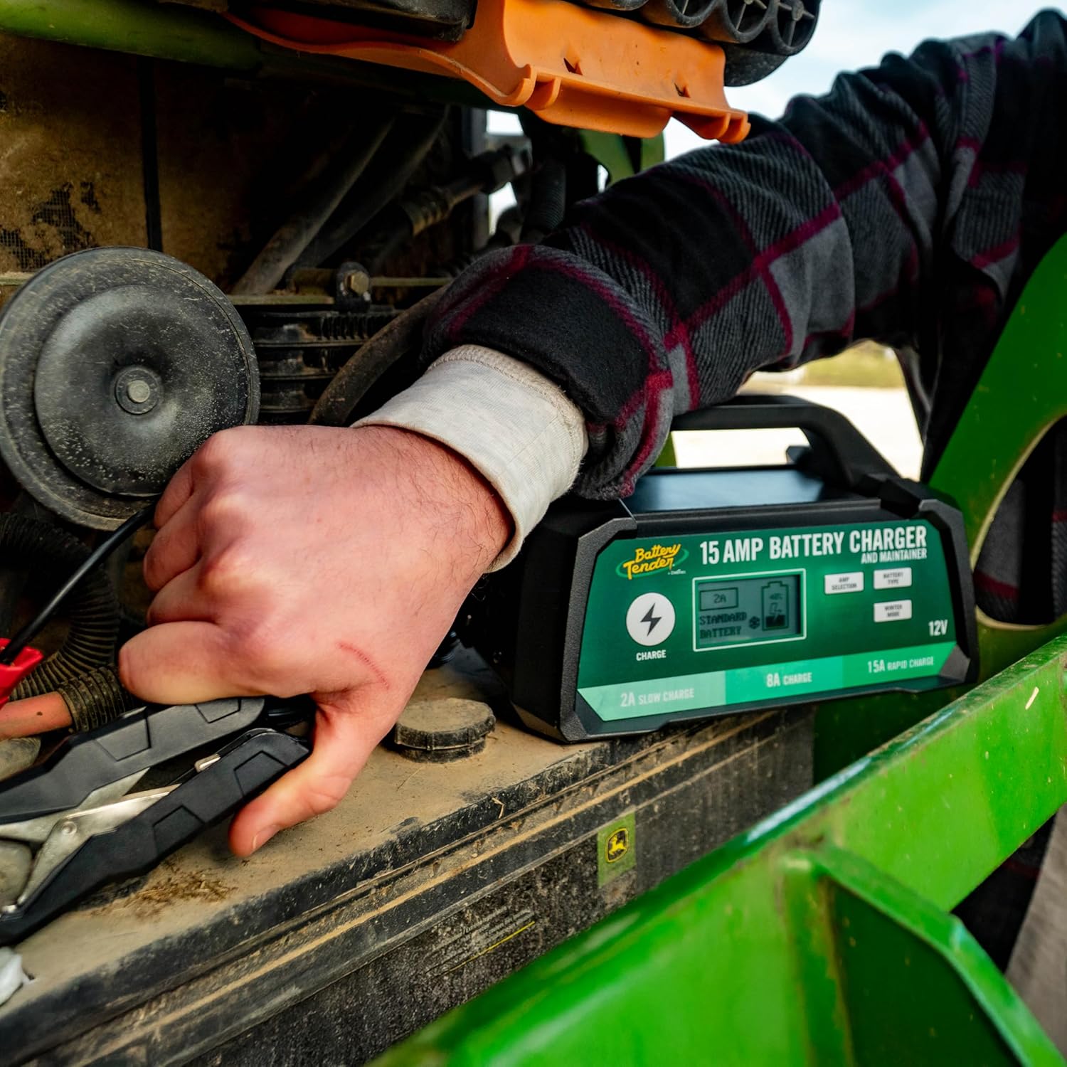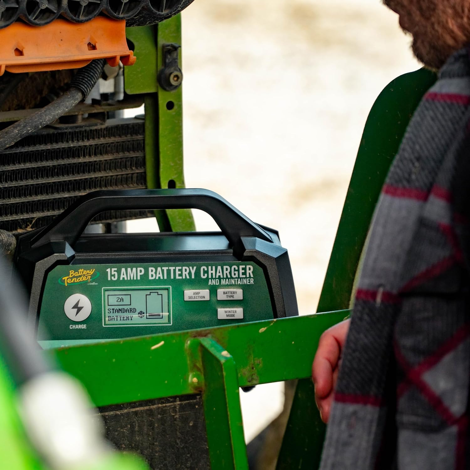 Battery Tender 15 AMP Battery Charger and Maintainer - 12V Switchable 15 AMP / 8 AMP / 2 AMP - Selectable Chemistry Standard AGM Gel - LCD Display - 022-0234-DL-WH