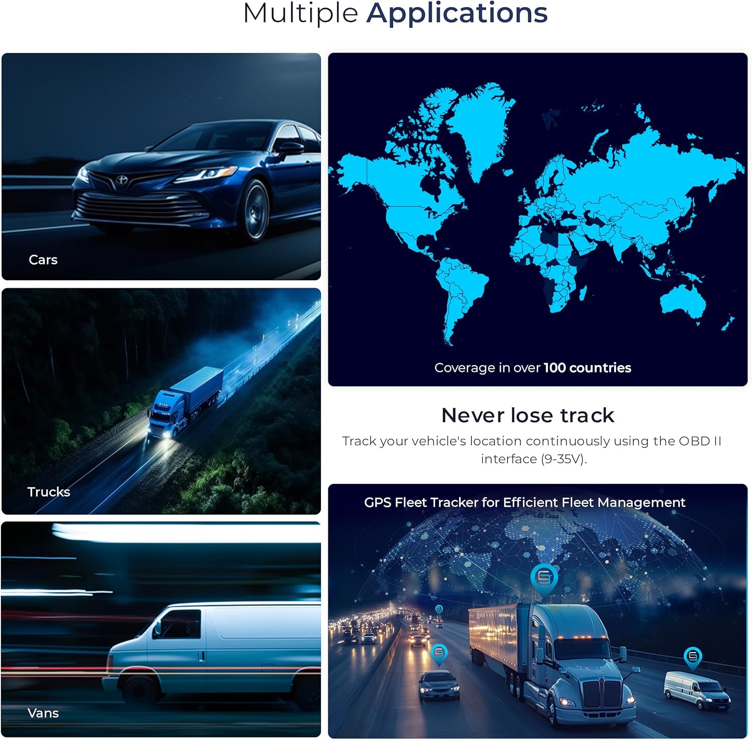 - UNINTERRUPTED POWER WITH BUILT-IN BATTERY AND OBD2 CONNECTION - Connects directly to your vehicle’s OBD2 port, providing continuous 24/7 tracking without the need for manual recharging. Delivers non-stop updates on location, mileage, engine status, and more. Splash-proof design for reliable performance in all driving conditions.