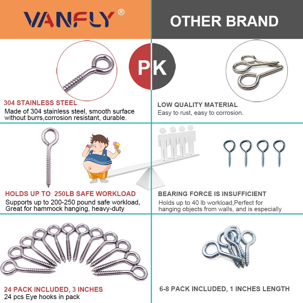 - 【WIDELY USED】Generally used to attach cables, chains and ropes in concrete and wood surfaces. Perfect for hanging office objects, gym accessories, pot plants,hanging garden tools,kitchen tools,outdoor lamps, even for marine, bath and outdoor applications and so on. Also suitable for securely hanging light weight items such as lights, picture, arts, small rope cords, chains, and more.