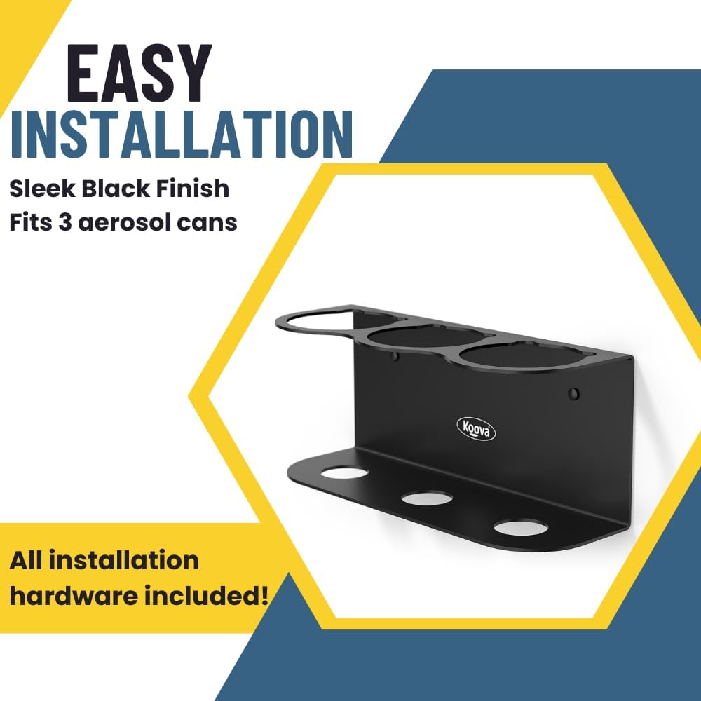 Koova 3 Aerosol Spray Can Holder | Easy Install Wall Mount | Heavy-Duty Powder Coated Steel Storage Rack for Garage & Home | Craft Workspace Paint Bottle Organizer | Hardware Included | USA Made