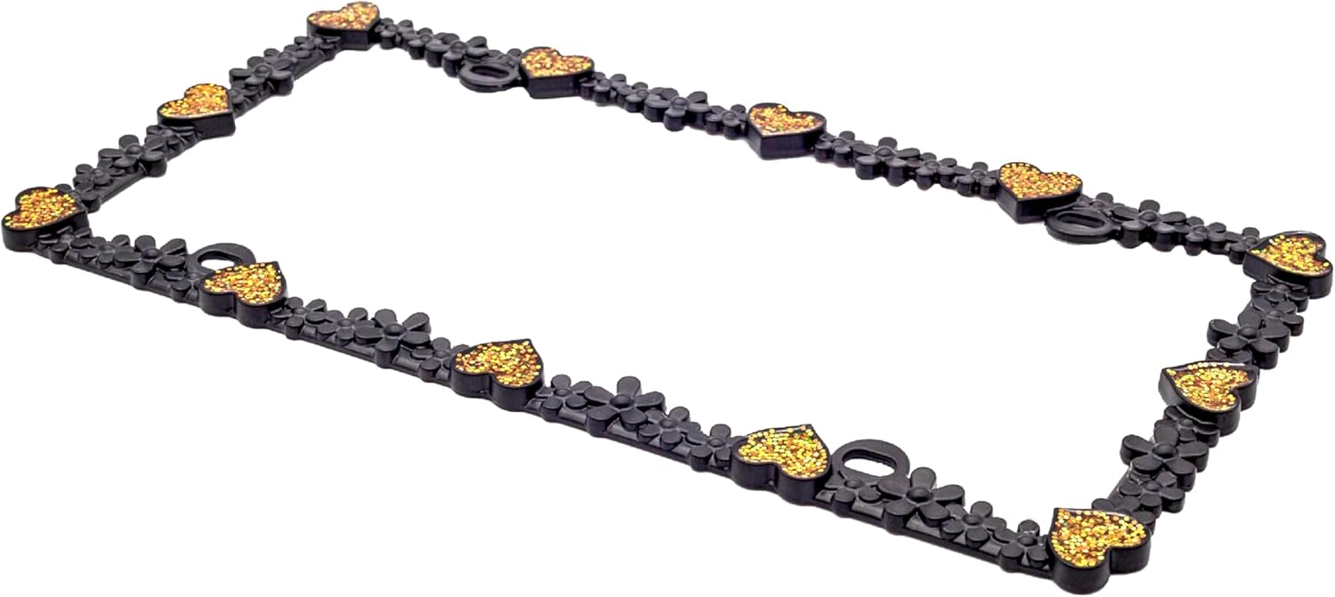 Creathome 3D Shining Daisy Heart License Plate Frame from Pure Zinc Alloy Metal Perfect Plate Holder, Matt Black with Gold Glitter, Luminously Heart
