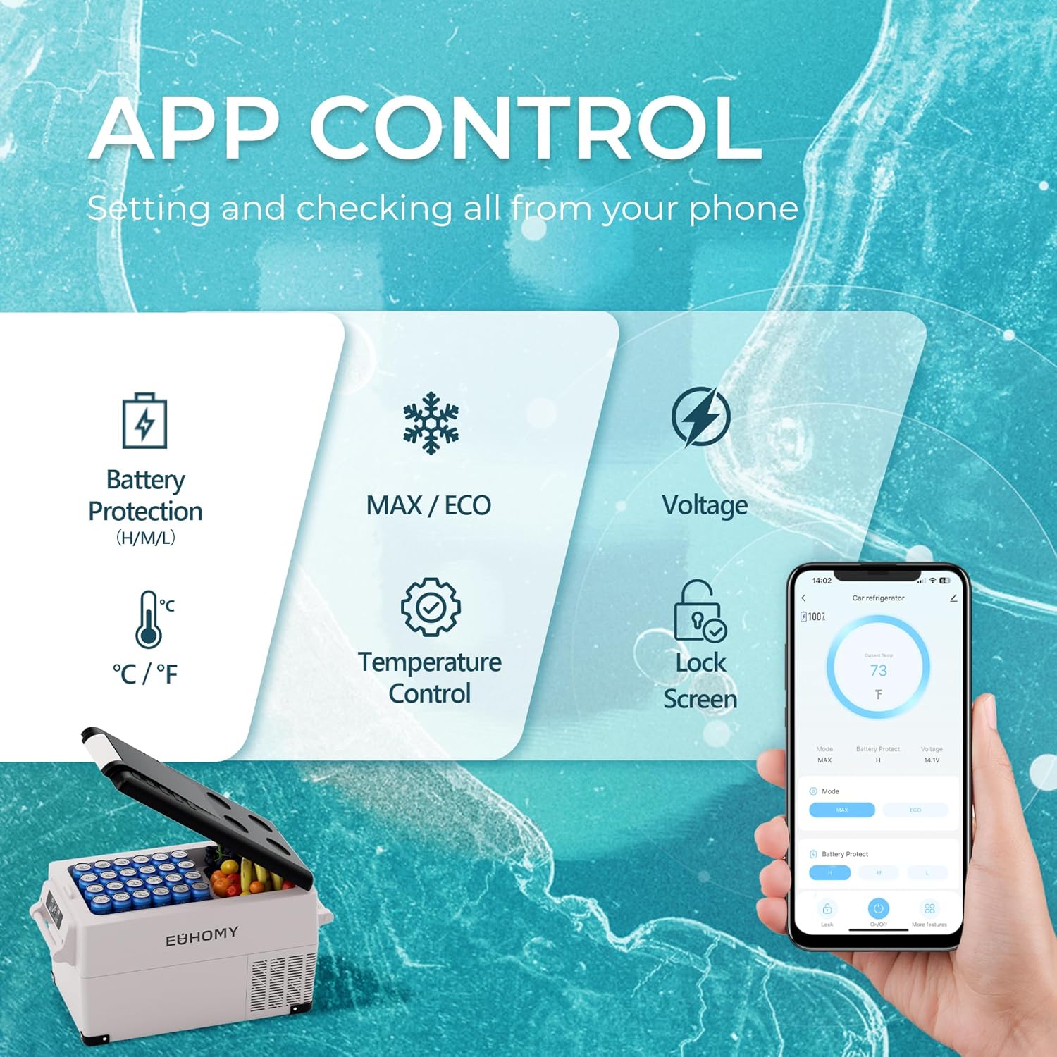 - Dual Storage & APP Control; The 12v refrigerator is designed with two zones to effectively reduce odor. The 12v cooler features a removable internal basket for easy storage and access. With Bluetooth mode and app control, you can conveniently manage the car cooler from a distance to facilitate your journey