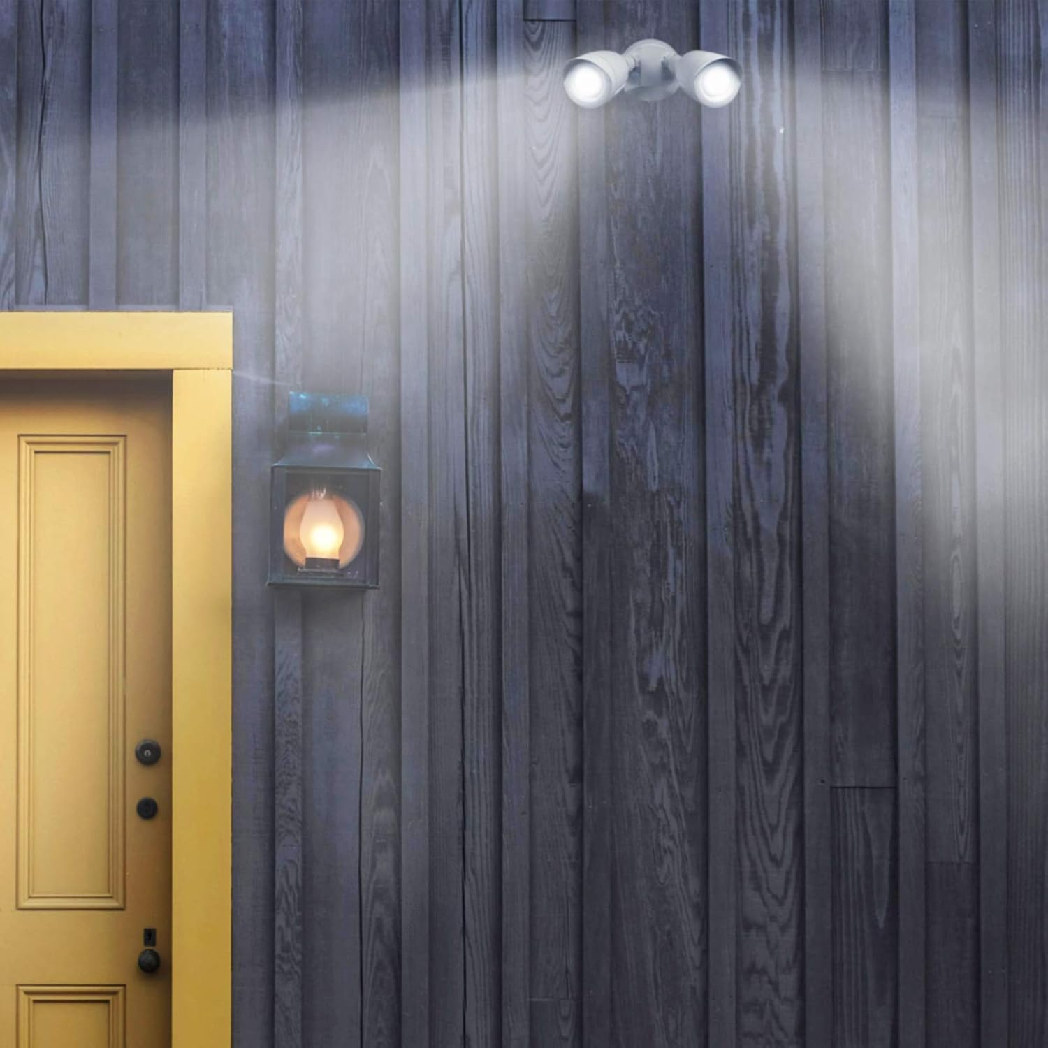 Ciata Flood Lights Outdoor, 20-Watt LED Bullet Head Security Flood Lights, Dual Head, RoHS and FCC Complaint, IP65 Rated, 1900 Lumens, 2KV Surge Protection, Die-Cast Aluminum in White Finish – 3000K