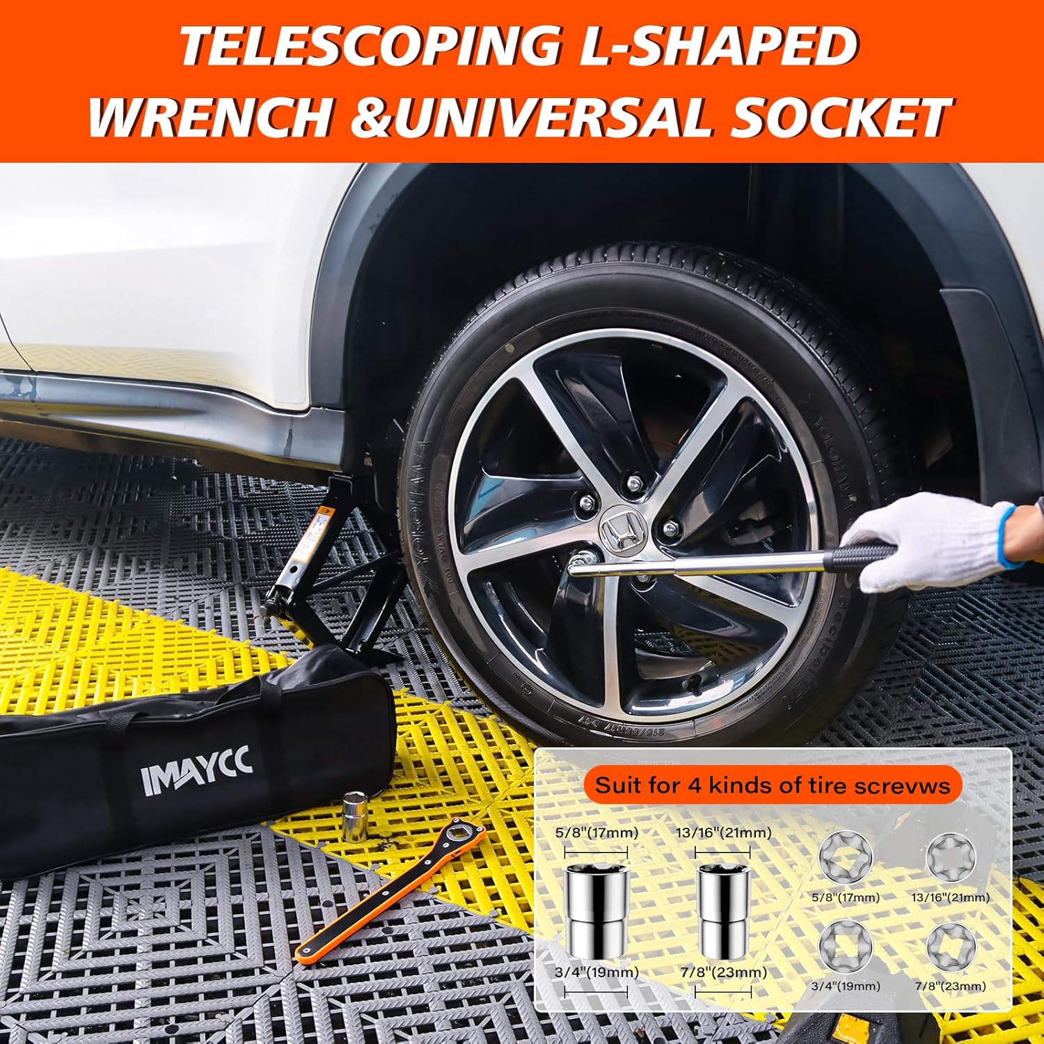 IMAYCC Scissor Jack for Car/SUV/MPV - Heavy Duty 3.0 Ton (6614 lbs) Car Jack kit with Hand Crank Trolley Lifter, Portable Emergency Tire Change kit with Wheel Wrench.