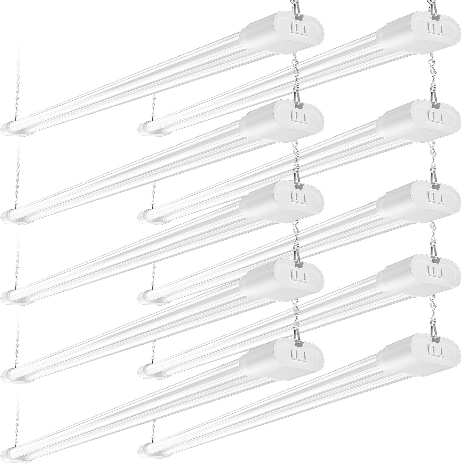 - 💡Easy Installation - Plug & Play. These 4ft led shop lights can be directly mounted to the ceiling or suspend from the ceiling in your garages, workshops, basements, warehouse, etc. Hanging chains and mounting screws are both included. Quick and easy setup.