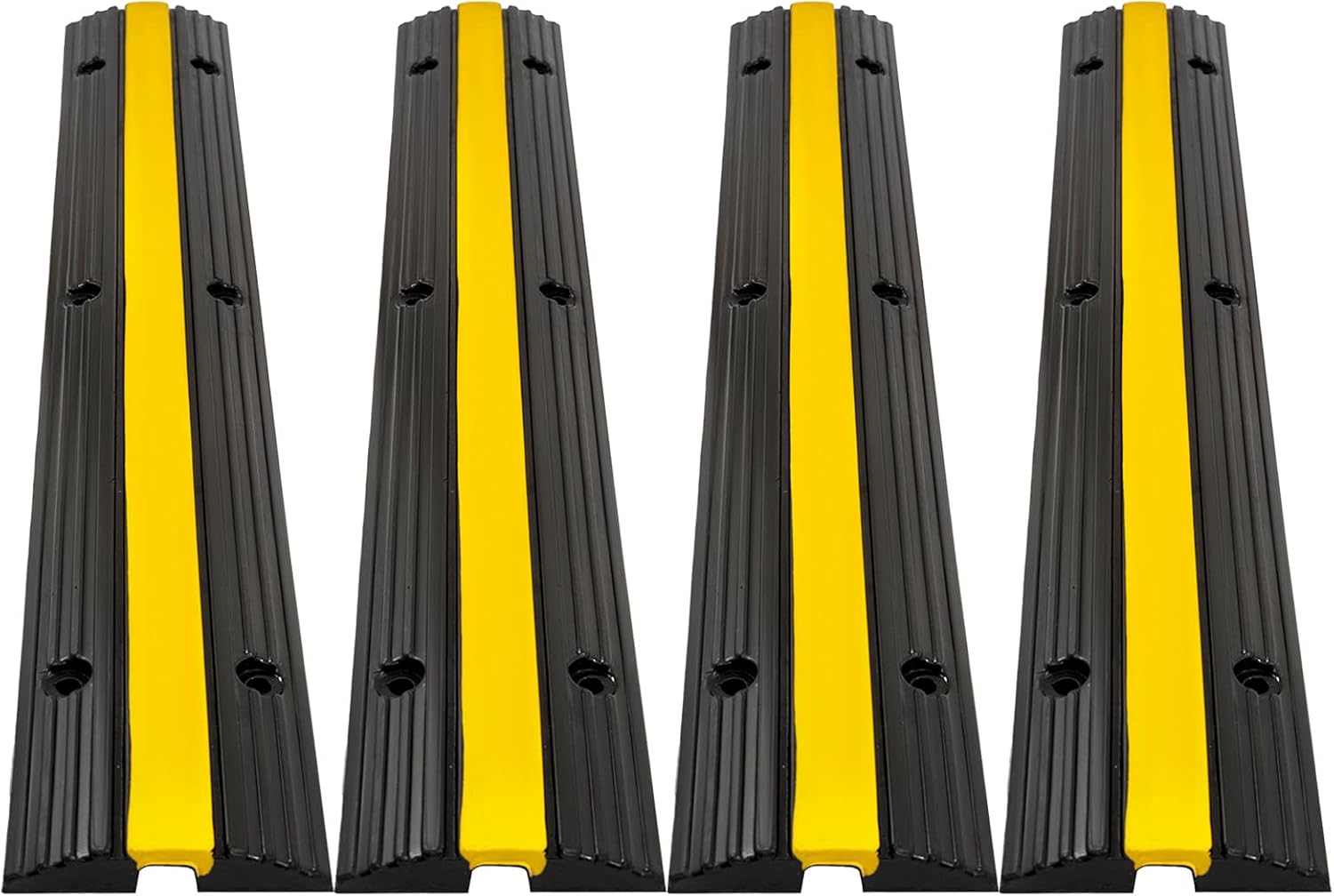 CXRCY Cable Protector Ramp 4 Pack of 1-Channel Rubber Hose Ramp, 22046Lbs Capacity Heavy Duty Speed Bumps Hose Cord Protector Ramps for Driveway&Outdoor/Wire/Hose/Pipe Hider