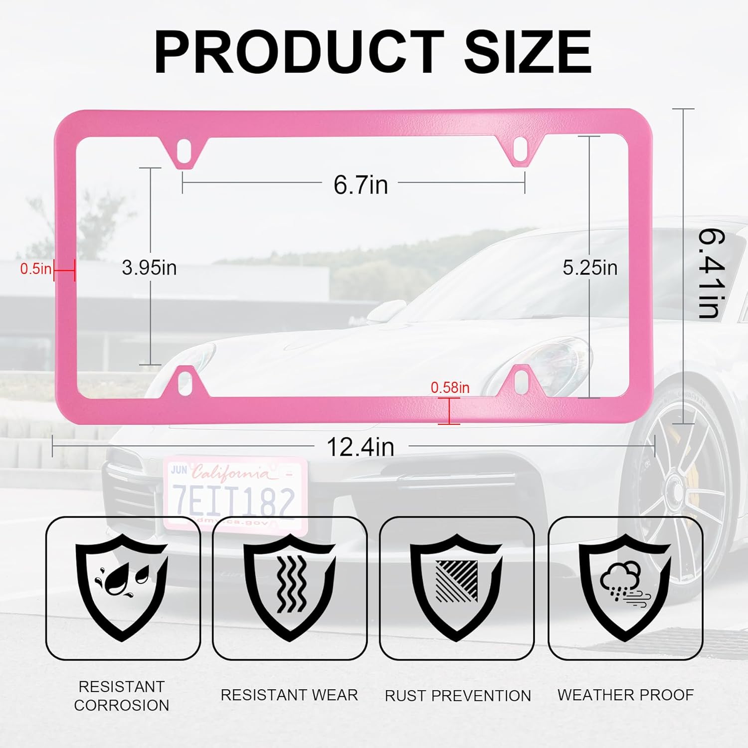 LivTee 4 Holes Stainless Steel License Plate Frames, 2 PCS Car Licence Plate Covers, Automotive Exterior Accessories Slim Design with Bolts Washer Caps for US Vehicles, Pink