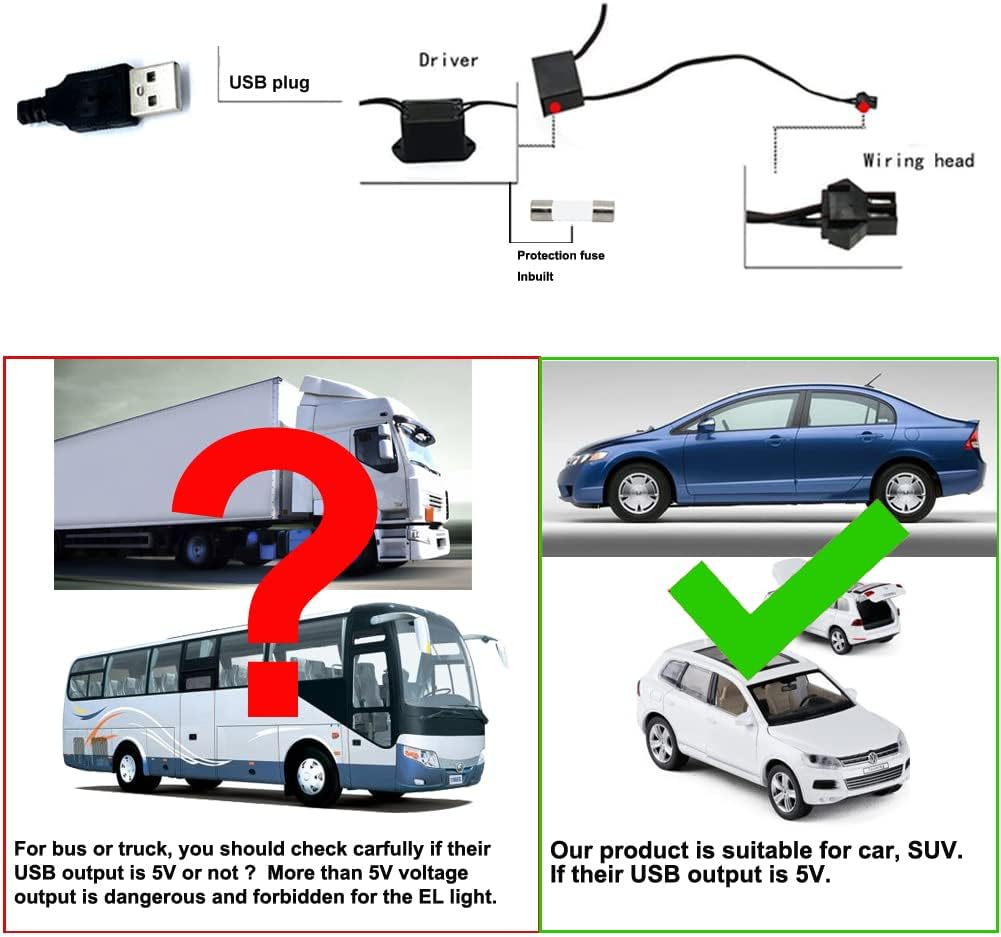 - [Safe and Reliable] MaxLaxer EL wire comes equipped with a fuse in the black box controller, ensuring safe use. It guarantees driving safety while adding style and sophistication.