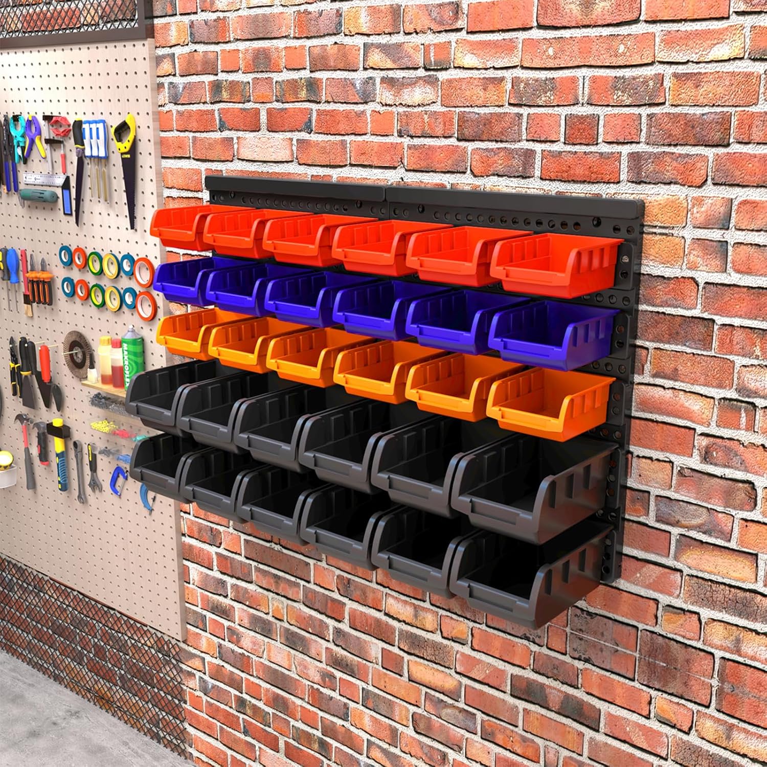 Wall Mounted Storage Bins Parts Rack 4 Colors Bin Organizer Garage Plastic Shop Tool, Garage Organizers and Storage (Style-Classic) 25.2"*16.2"