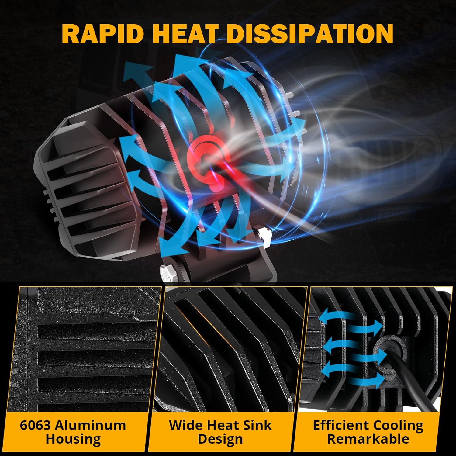 - 【Heat Dissipation】LED dirving fog light adopt Lower Power Consumption technical. All in aluminum profile and thick enough heat sinks housing, helps it speed up the heat dissipation and make it built to last. Effectively prolong lifespan of the led work light more than 50,000 hours.