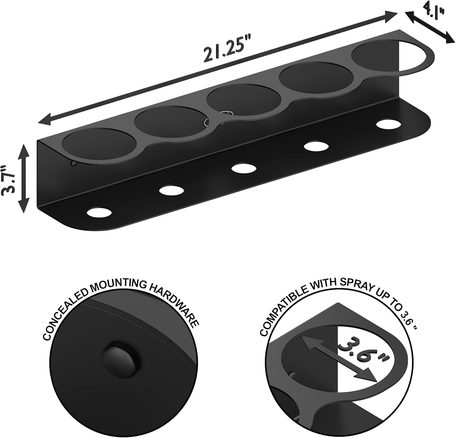 Koova 5 All-Purpose Spray Bottle Holder | Easy Install Wall Mount Hardware Included | Heavy-Duty Powder Coated Steel Storage Rack for Garage And Home | Craft Workspace Paint Bottle Organizer USA Made